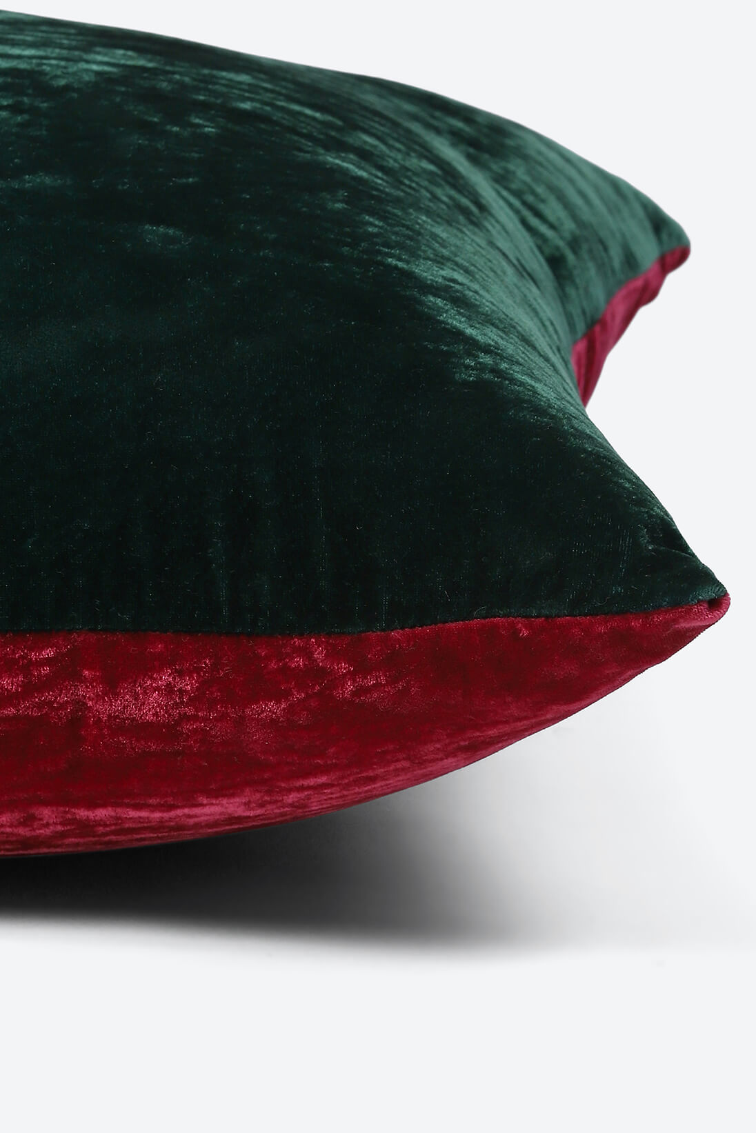 A solid silk velvet cushion with a contrasting back in the same lush textile, adding a refined pop of colour and an easy touch of warmth to any space.