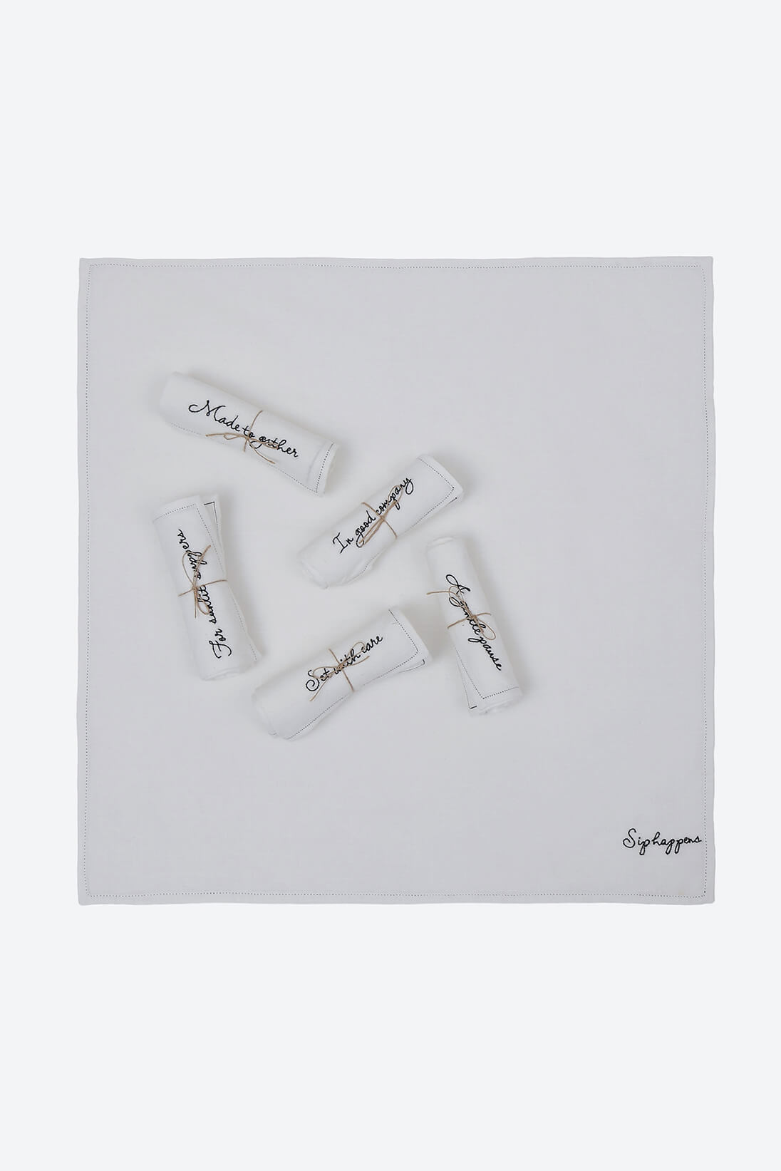 Handspun Handwoven cotton napkins with hand embroidered typographic motifs