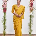 This sari comes with one meter woven blouse fabric. The blouse shown on the model is just for representation.
