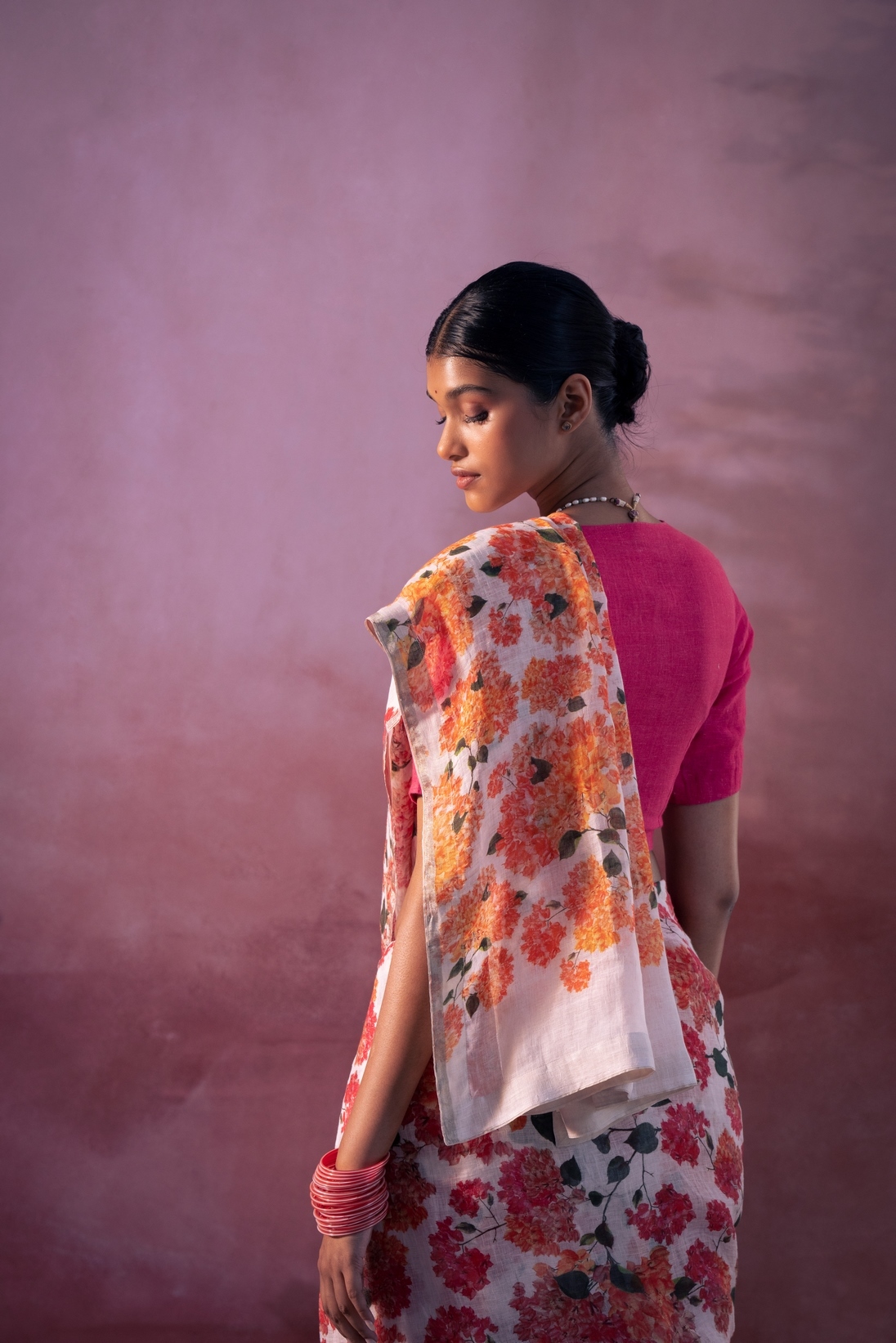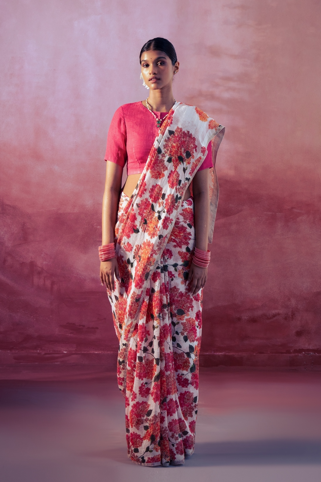 - Bougainvillea Printed Linen Sari