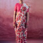 The printed linen sari comes with seperate one meter plain linen blouse fabric as shown in the picture. The sari is also finished with silver zari fabric. Sari Length – 5.5 meter