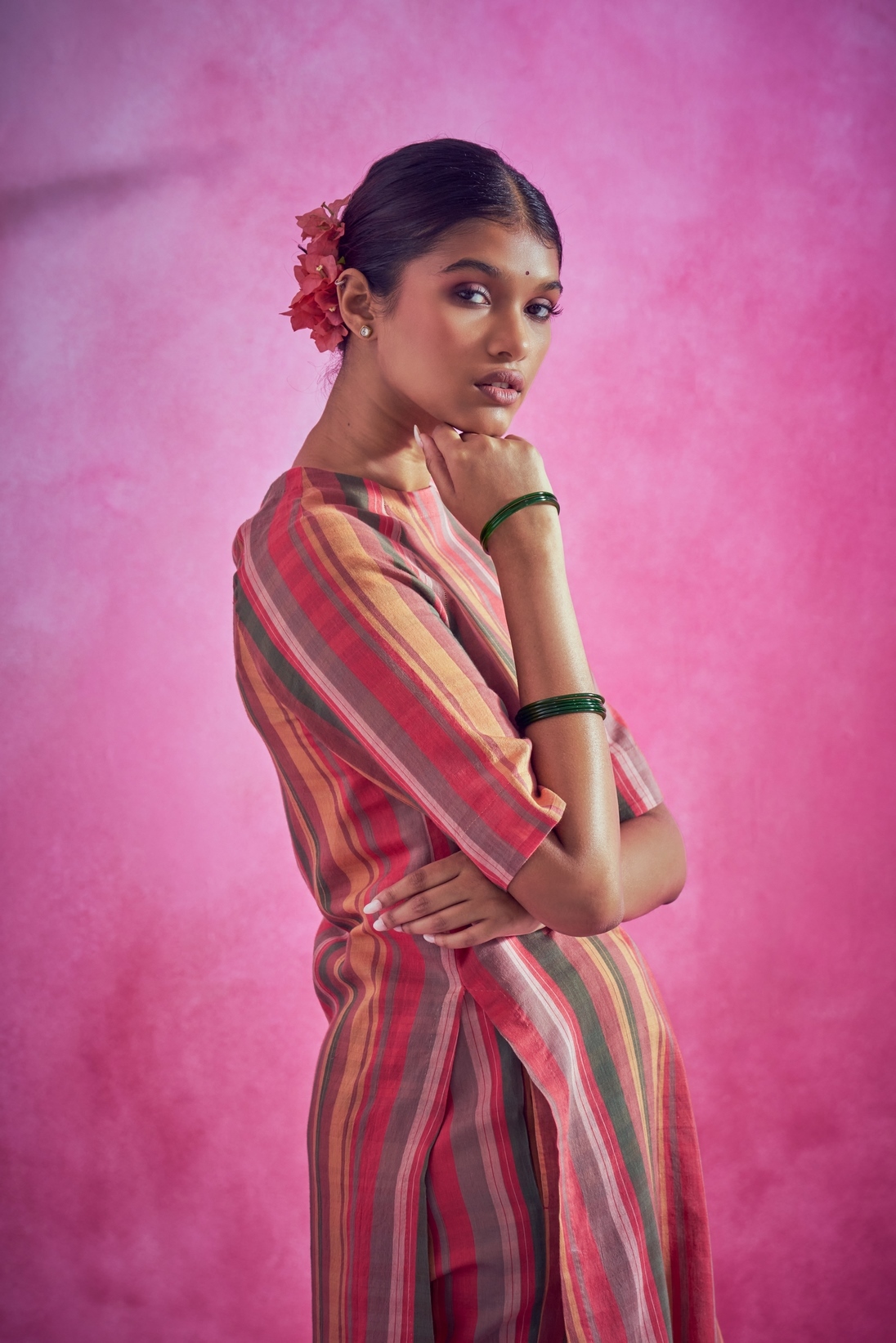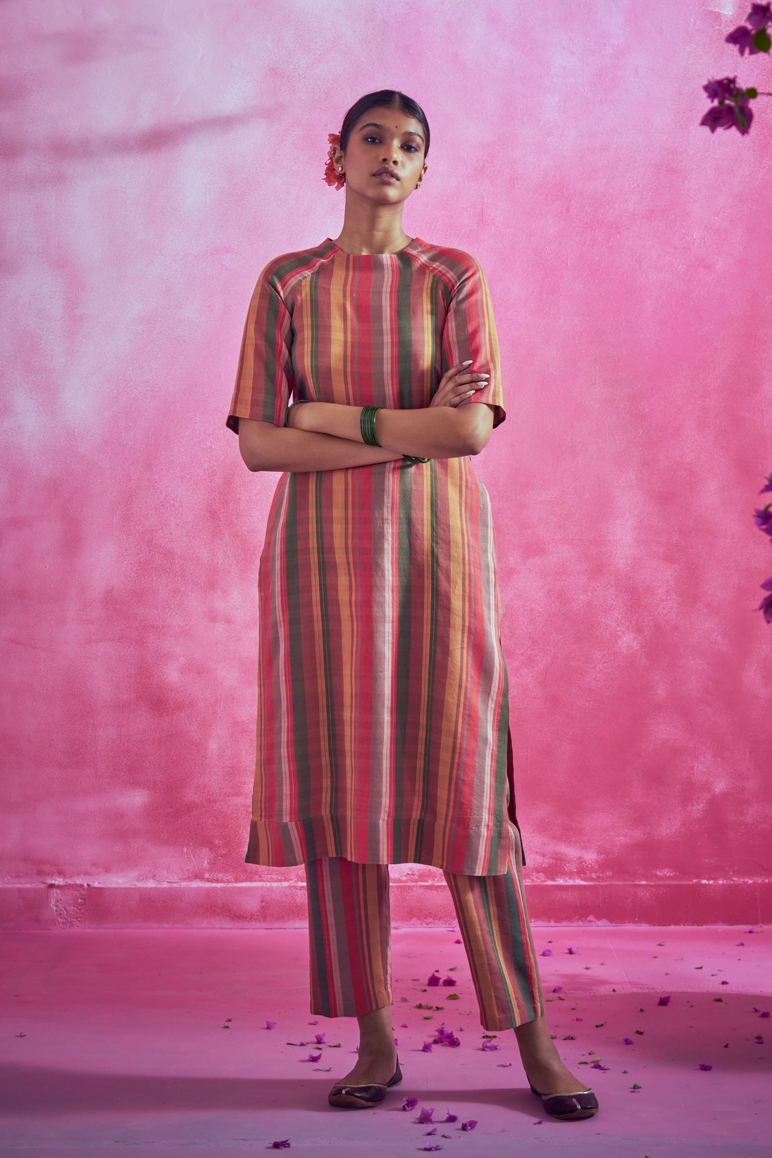 This khadi nova set with irregular stripe is a chic everyday wear.
