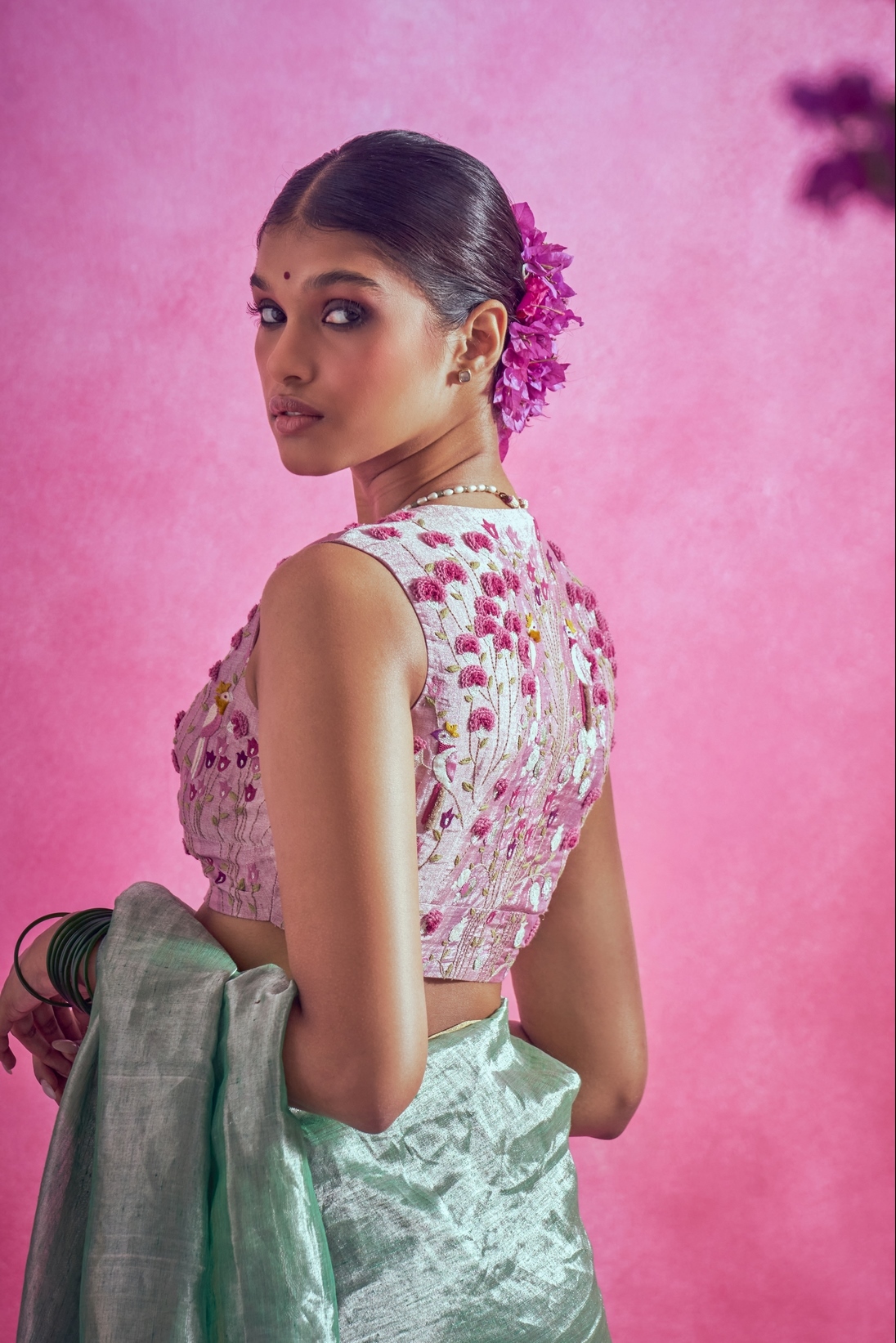 Sleveless Pink Festive Emroidered Blouse