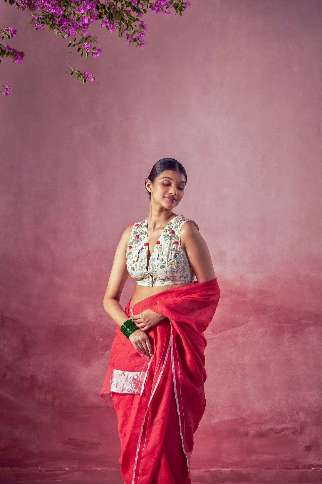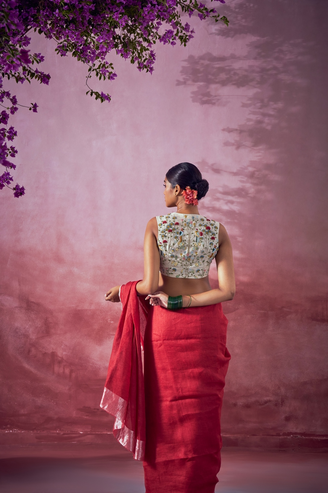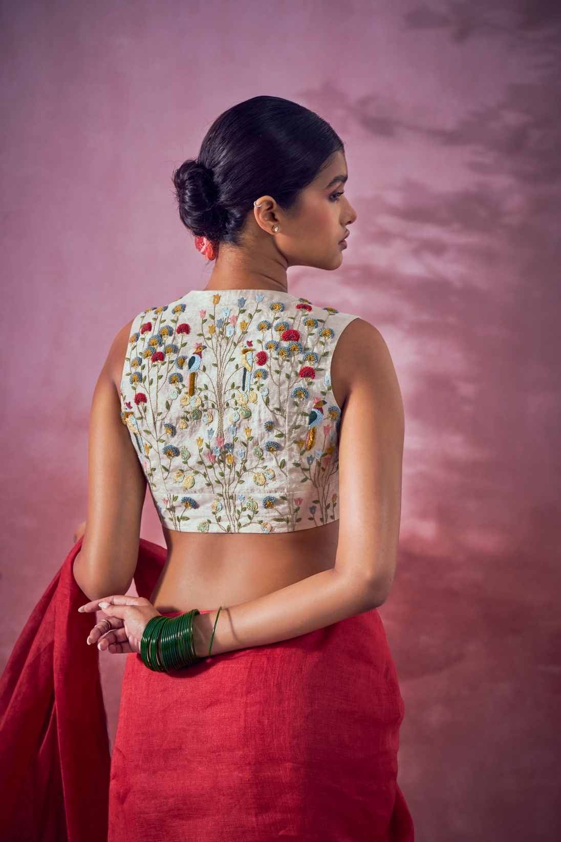 Cut sleeves blouse with fine floral embroidery detail.