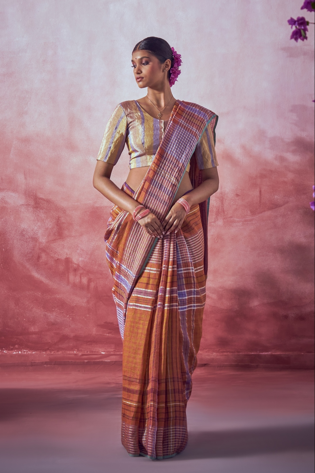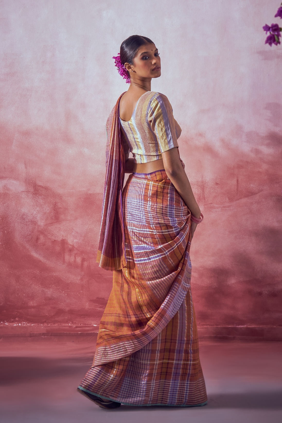 Spice Plaid Linen Sari