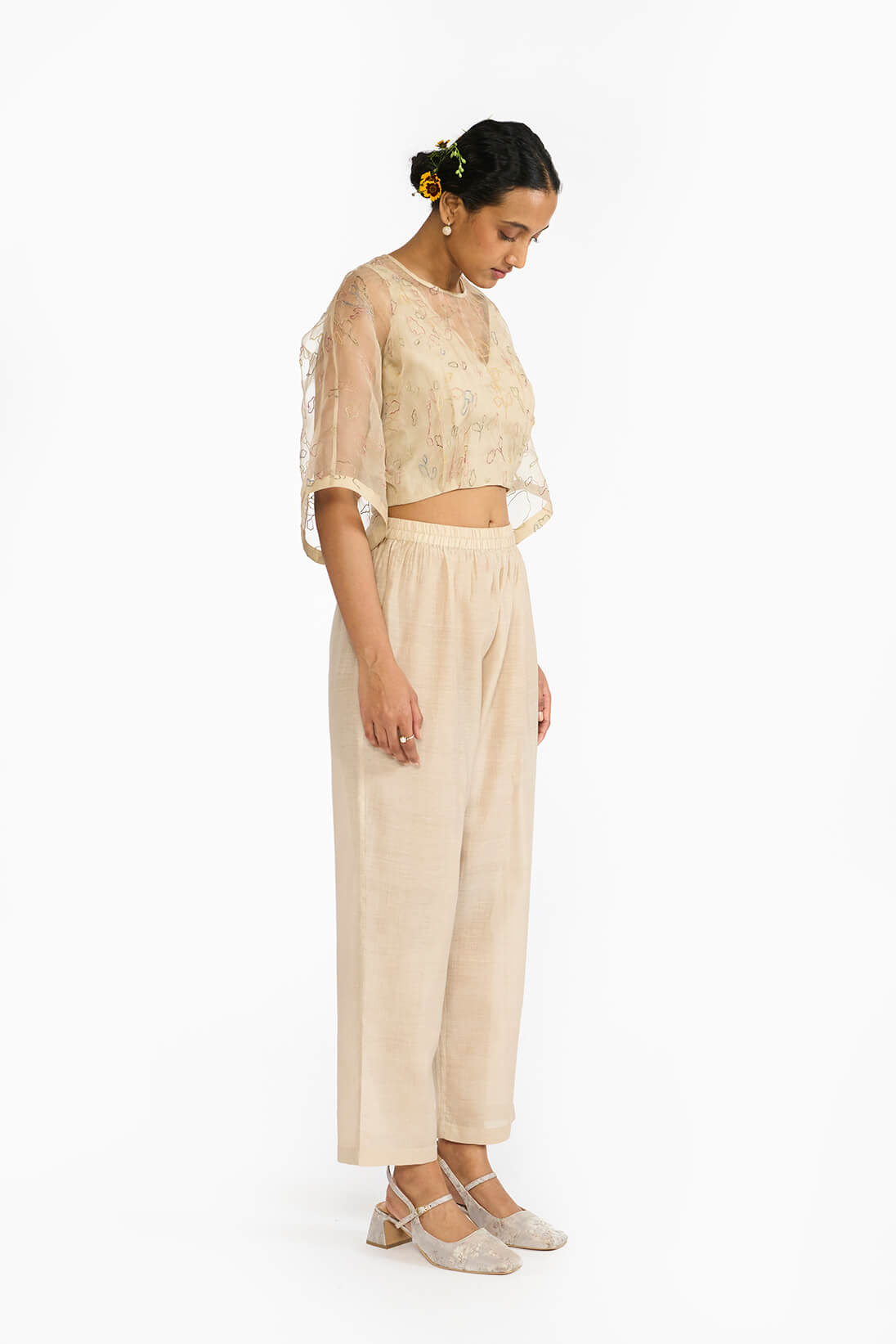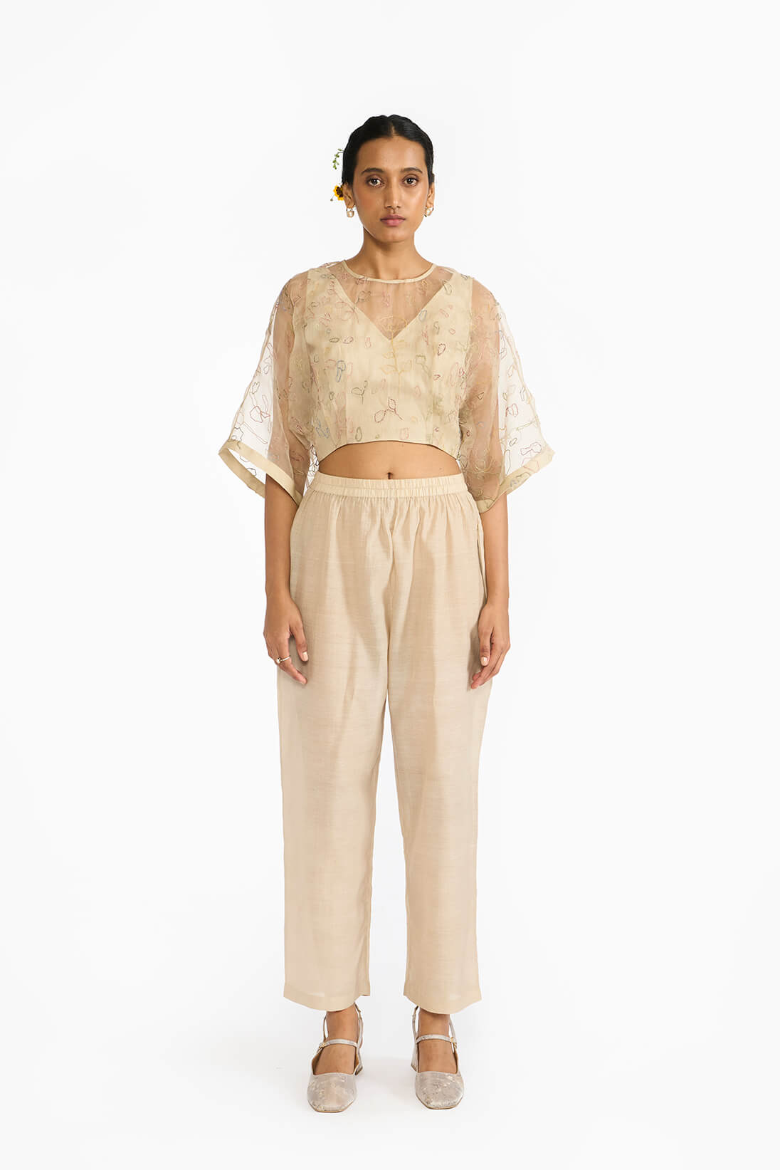 Lilypond Pants feature a smart tappered fit in soft handwoven khadi silk textile, seasons’s favrouite trousers to pair with any shirt or tunic across the collection