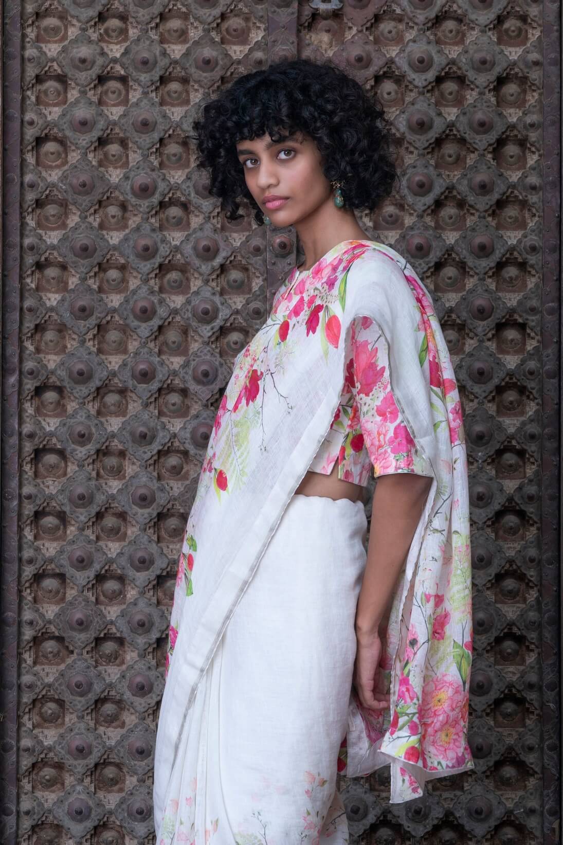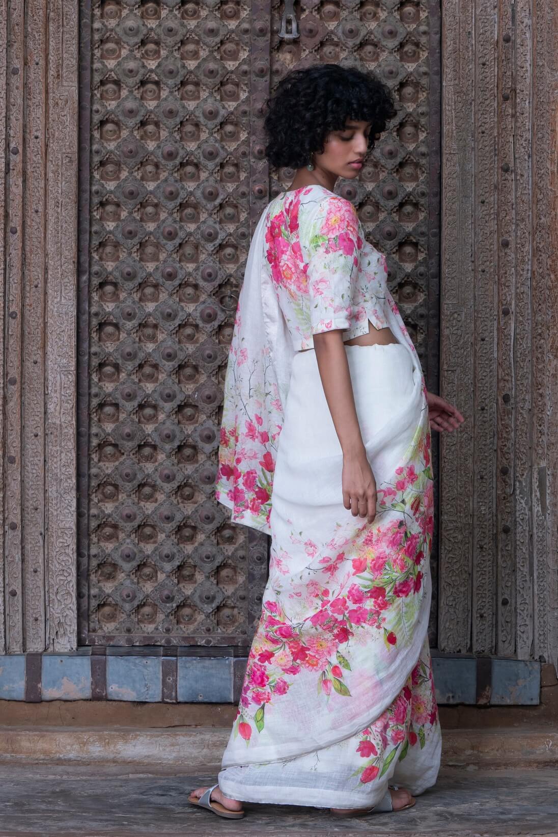 Our morakasi printed linen saris are full of beautiful florals in bright and happy tones.