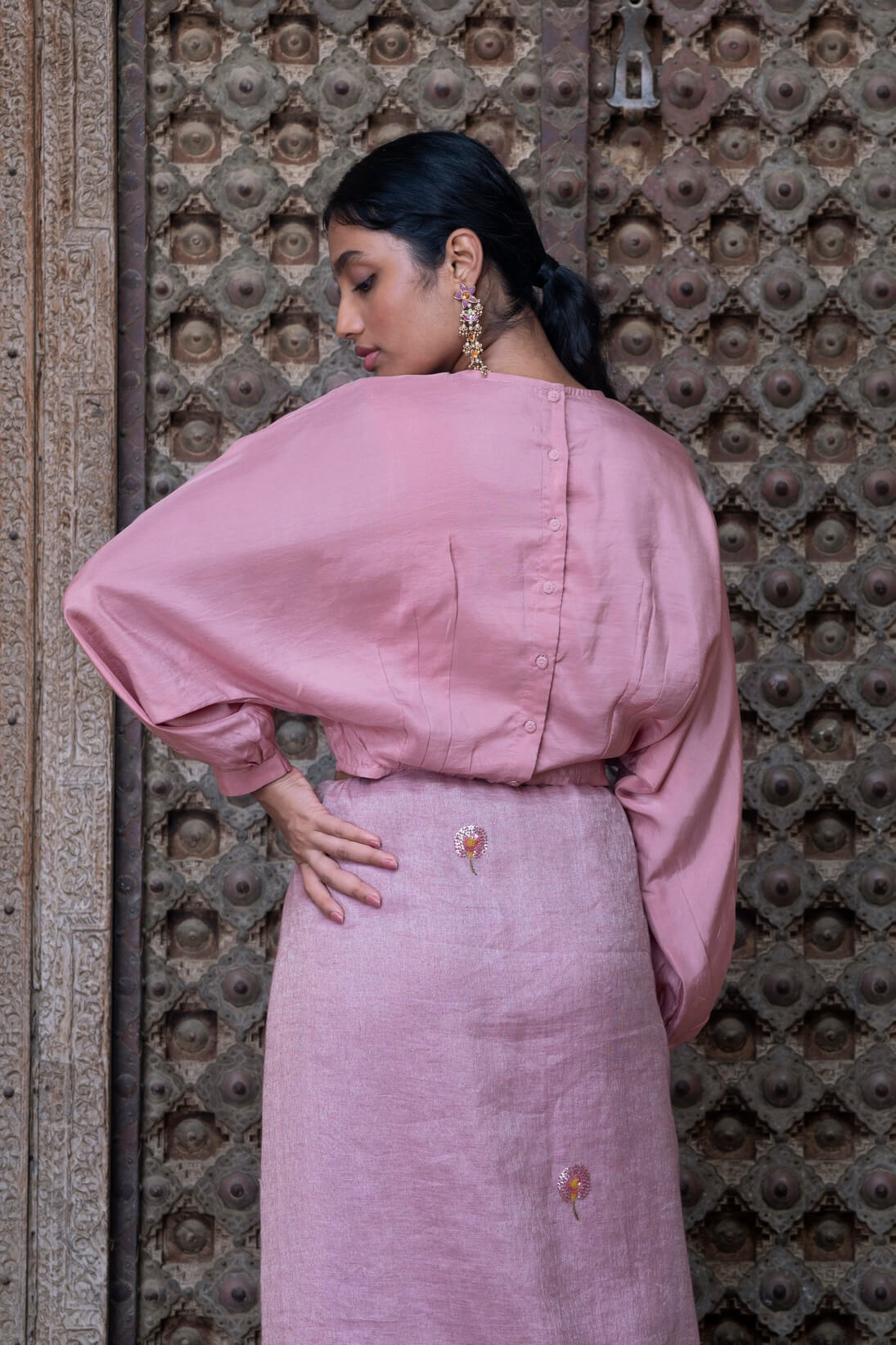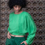 We have reinterpreted our kaftan blouses for the festive season. Long gathered sleeves give them a soft feminine appeal.