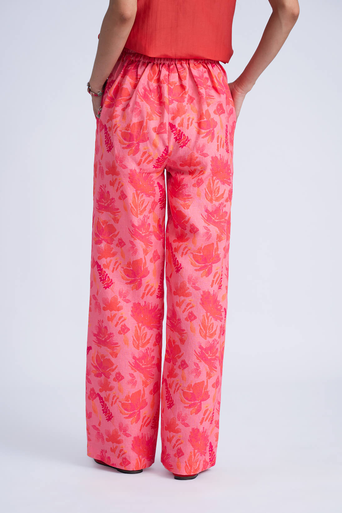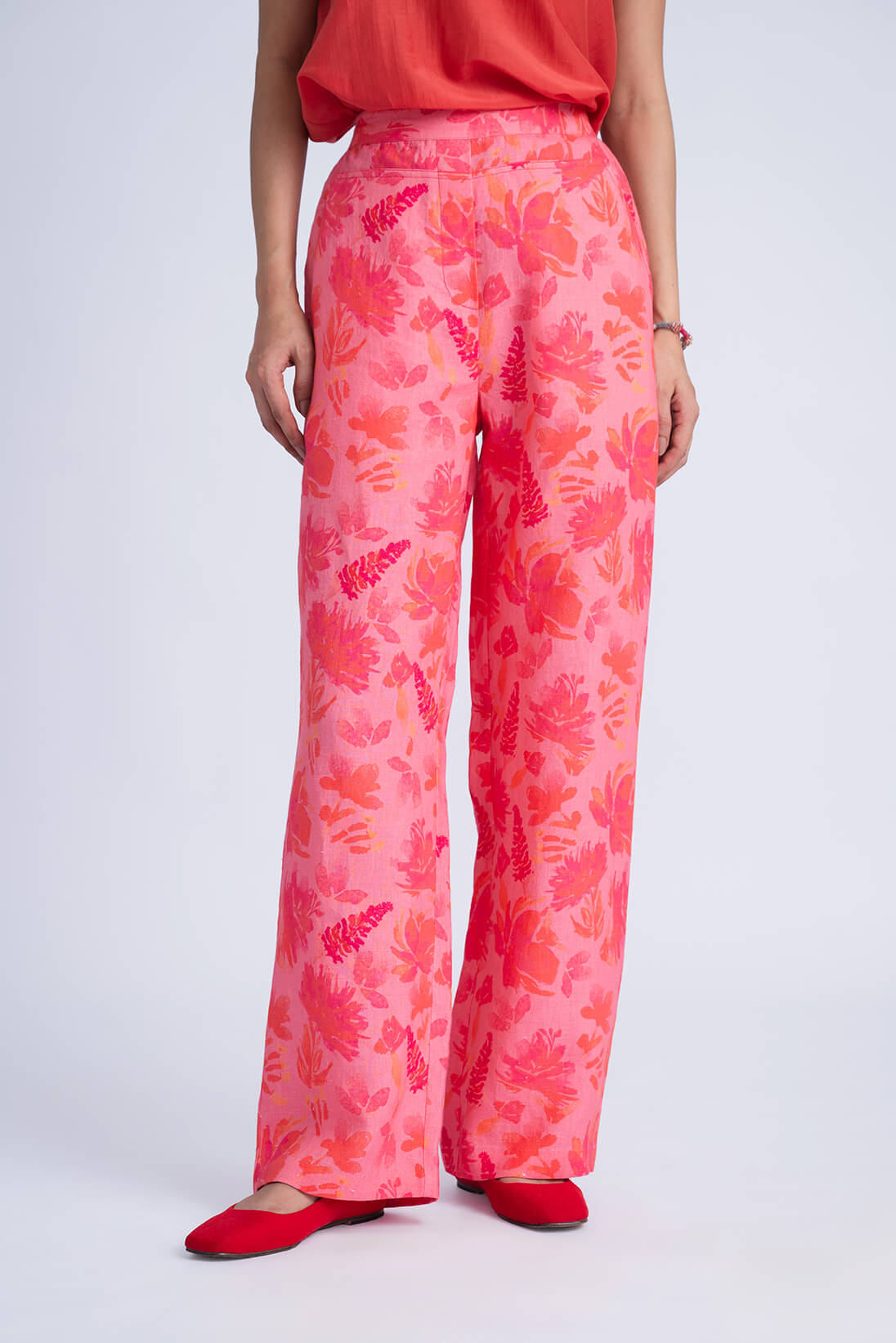 Solana Sun Pants showcases our principal print of the season, brought to life through loose hand-painted florals that echo the movement of tossed foliage, in refreshing hues of pink across our signature linen surface in an easy fit summer trouser silhouette.