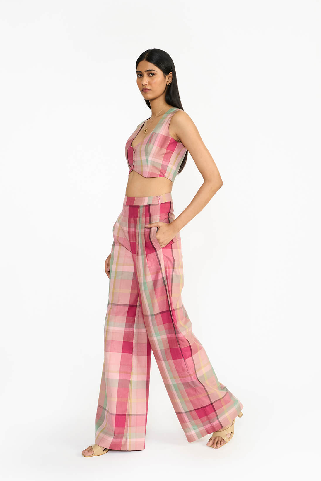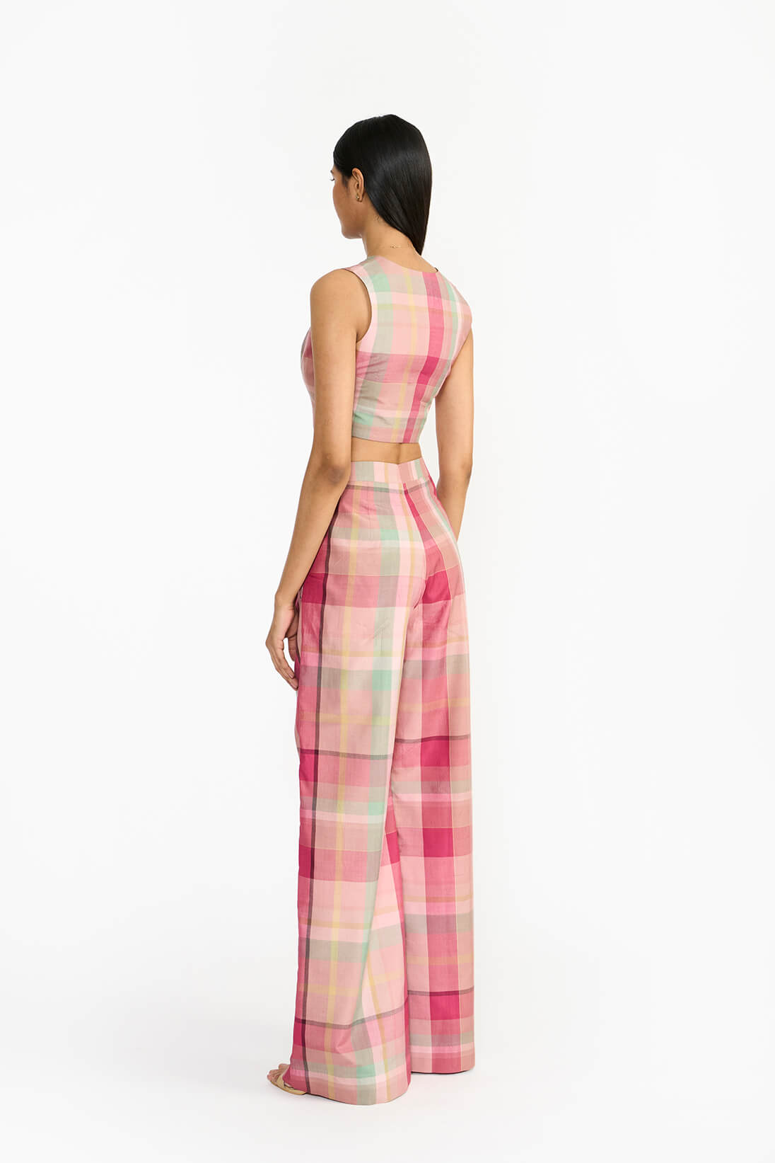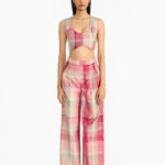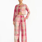 Designed for comfort and style, the plaid trousers are can be paired bautifully with happy festive tones.