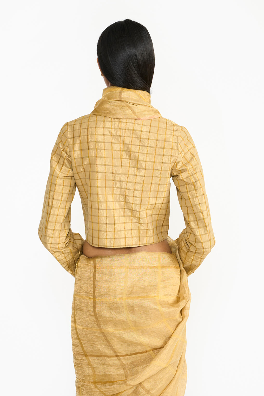 A jacket silhouette with the nostalgia of yesteryears and beautiful handwoven zari fabric is one of our favourite this season. Add the Gold Chidambara jacket to your wardrobe and qietly watch the heads turn.