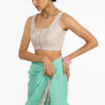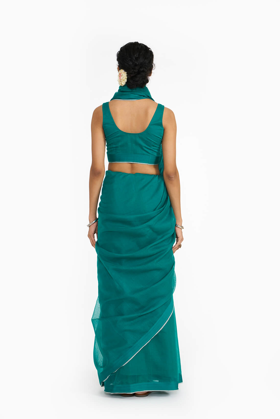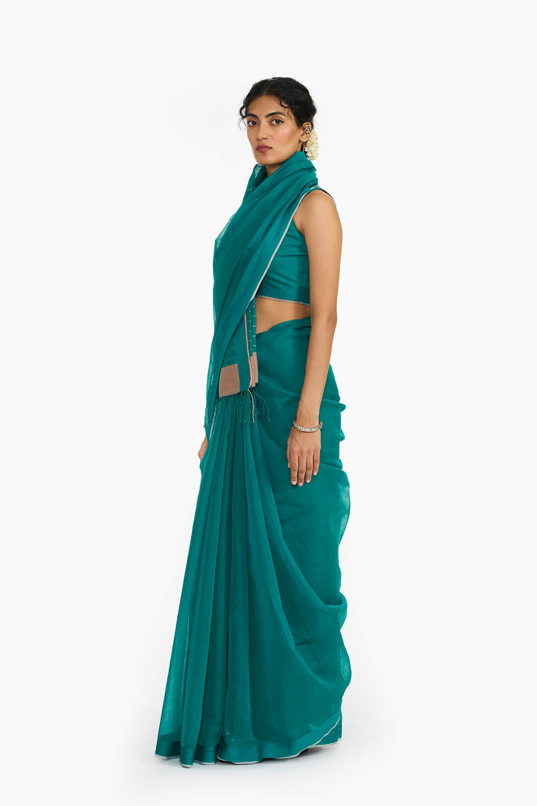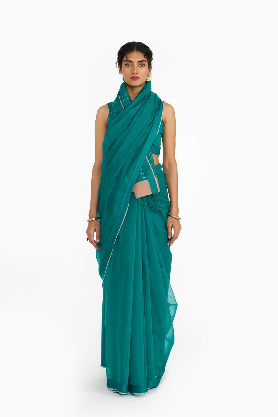 “The sari is 5.5 meters in length & it comes with a 1 meter running blouse piece as shown in the picture.