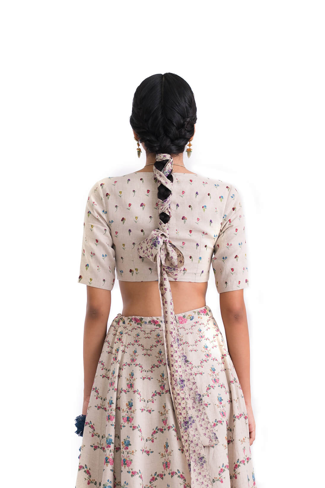 The Meira Blouse features a floral pattern, rendered on a classic fitted bodice silhouette with scoop neckline in our signature natural linen fabric.