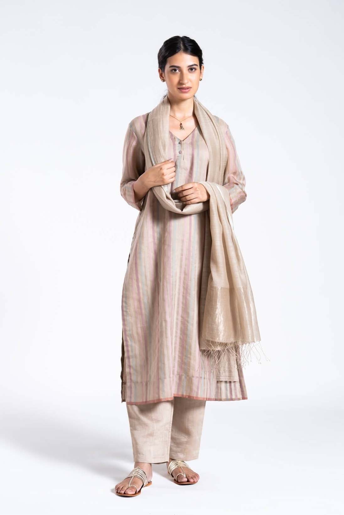 This set contains a kurta and trousers.Dupatta is not included in this kurta set.Dupatta can be paired separately.