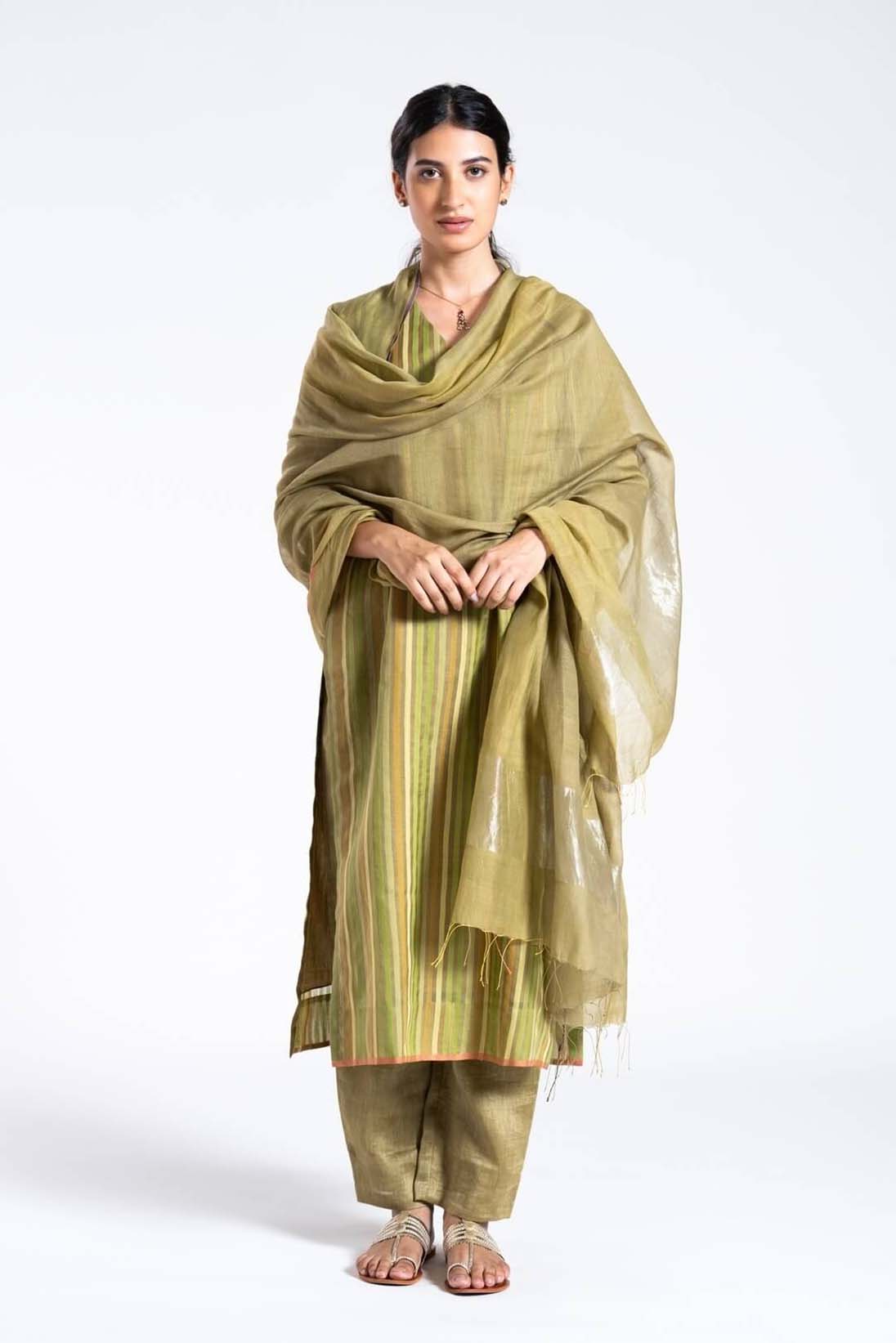 Tonal hues in self-striped organza make our festive nova set a delightful option for your special occasions.