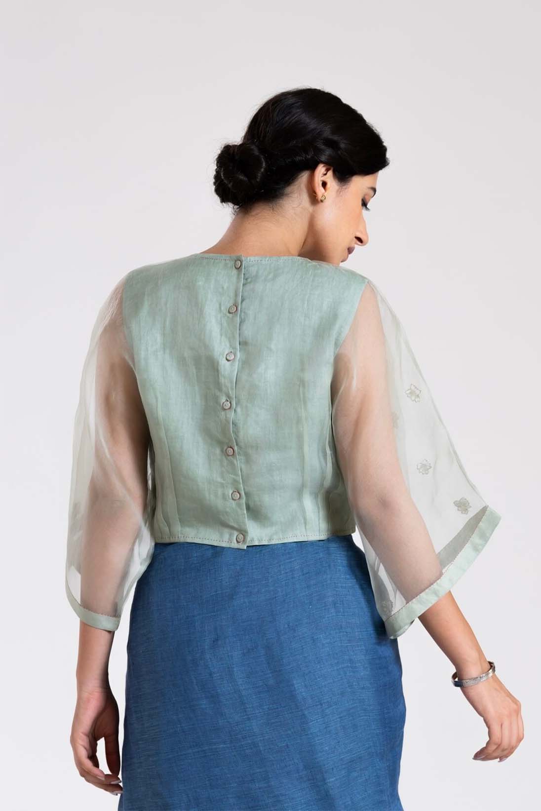 Green Floral Applique Organza Kaftan Blouse