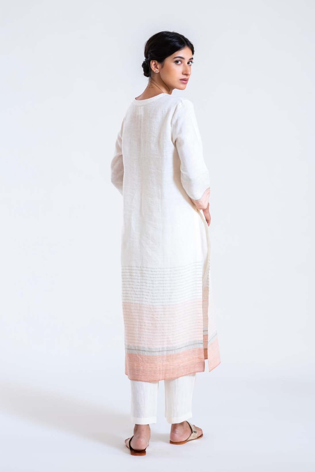Our classic Nova returns in beautiful color-blocked handwoven linen fabric in soft hues, making it just right for your special occasions.