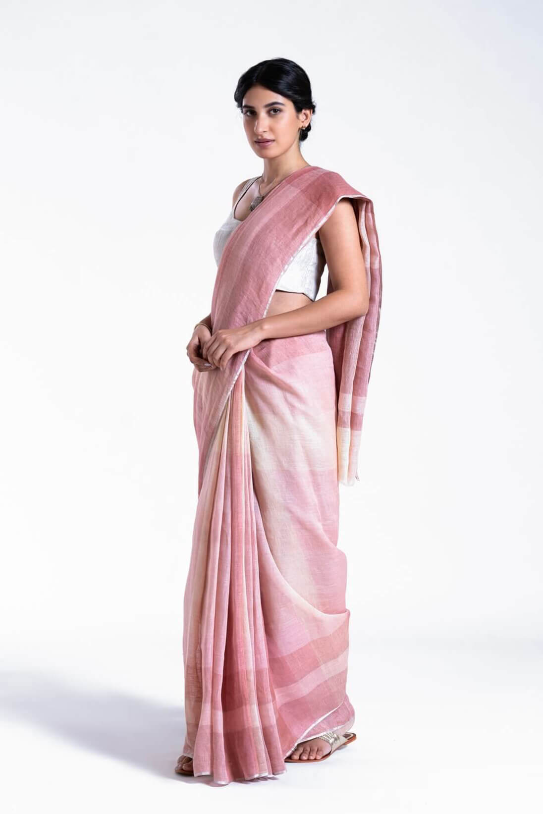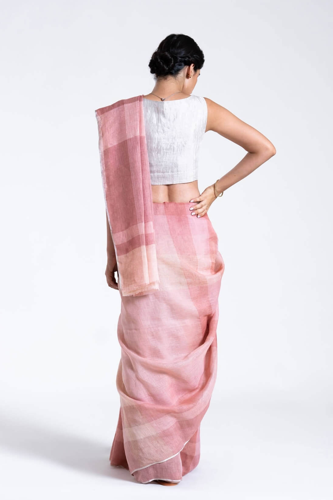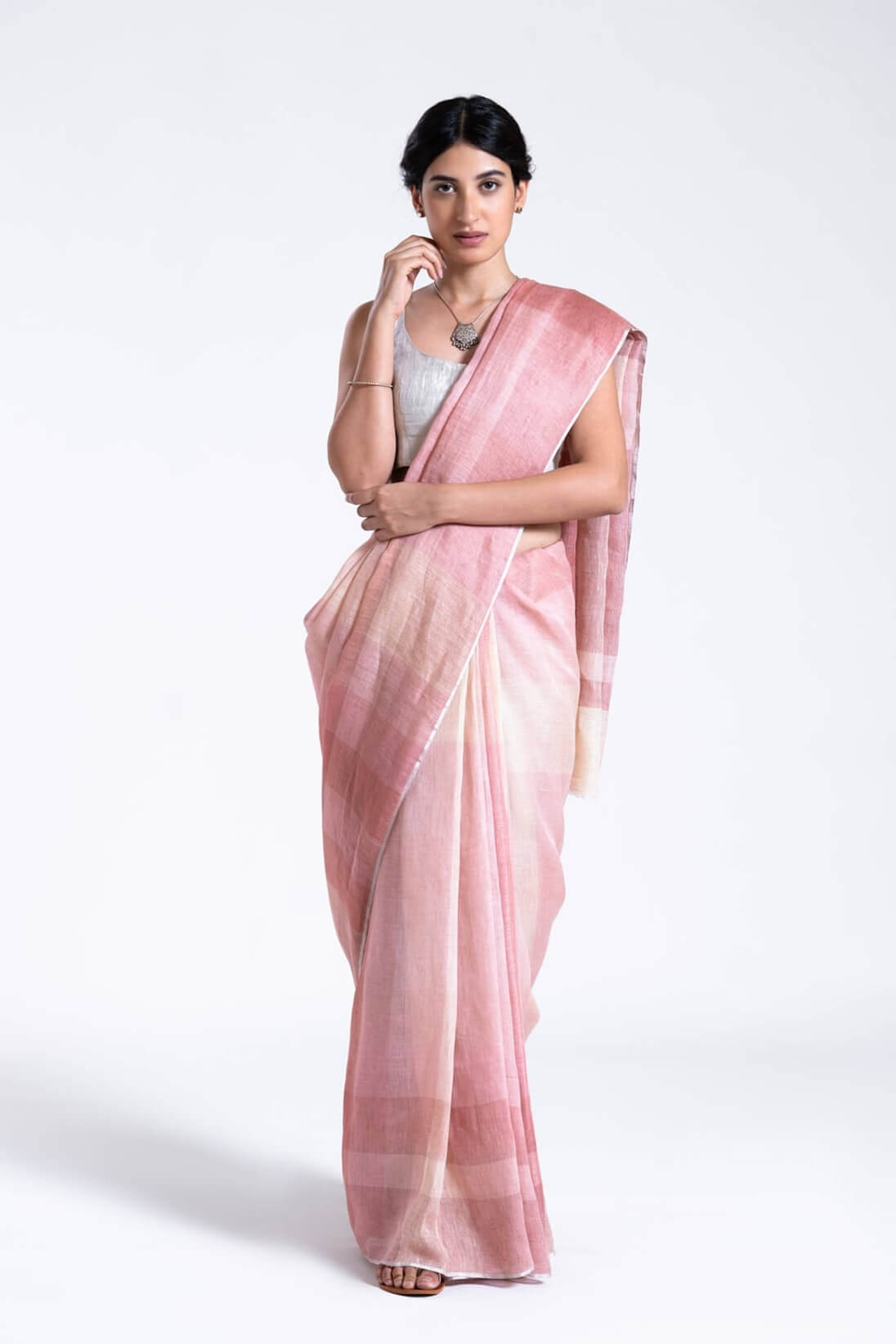 Our plaid saris are a play of various tones of the same color as the artist mixes the color and works through various shades to get the right hue .