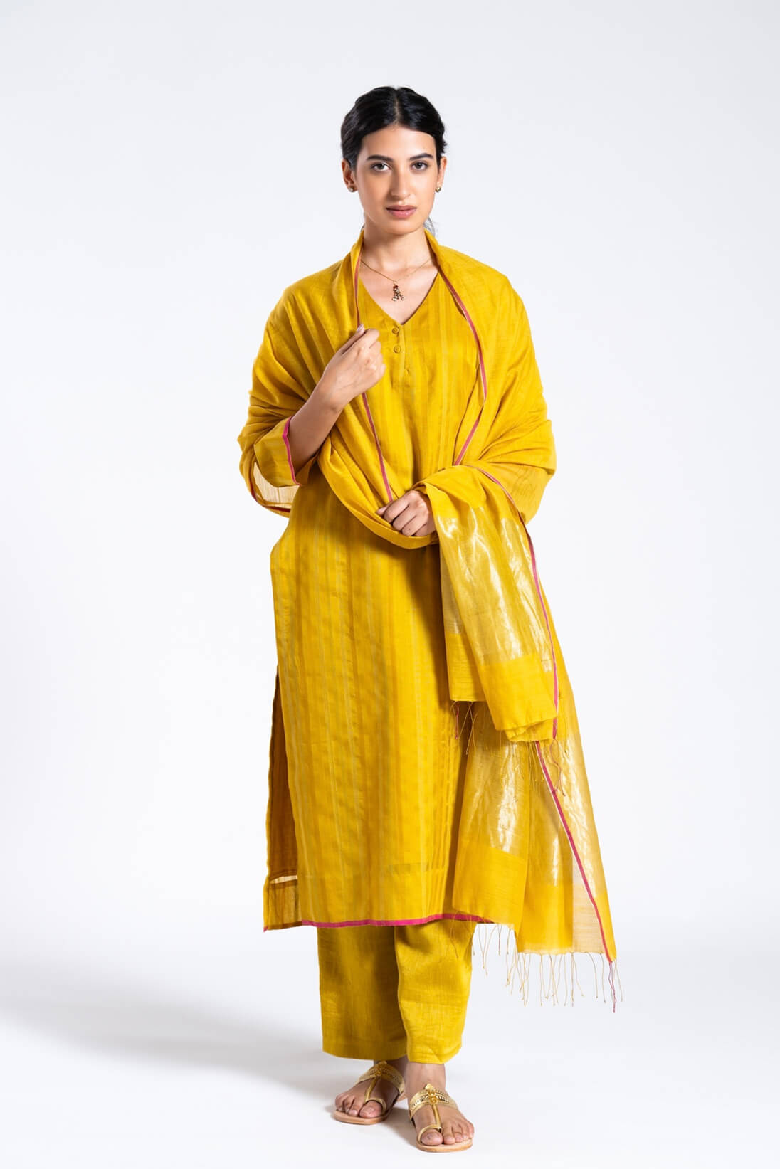 This set contains a kurta and trousers.Dupatta is not included in this kurta set.Dupatta can be paired separately.