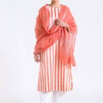 This handwoven striped silk satin nova set is soft and luxurious and can be worn both with or without a dupatta.