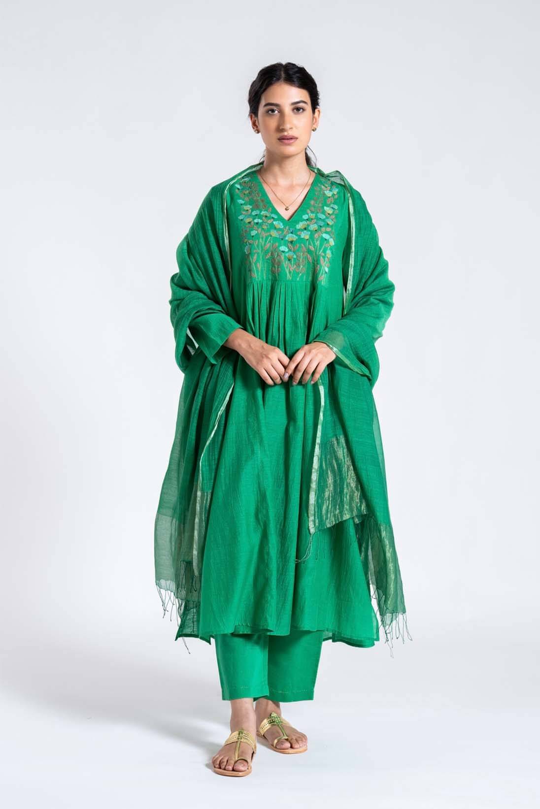This set contains a kurta and trousers. Dupatta is not included in this kurta set. Dupatta can be paired separately.