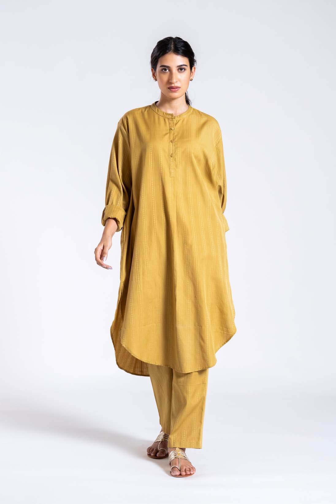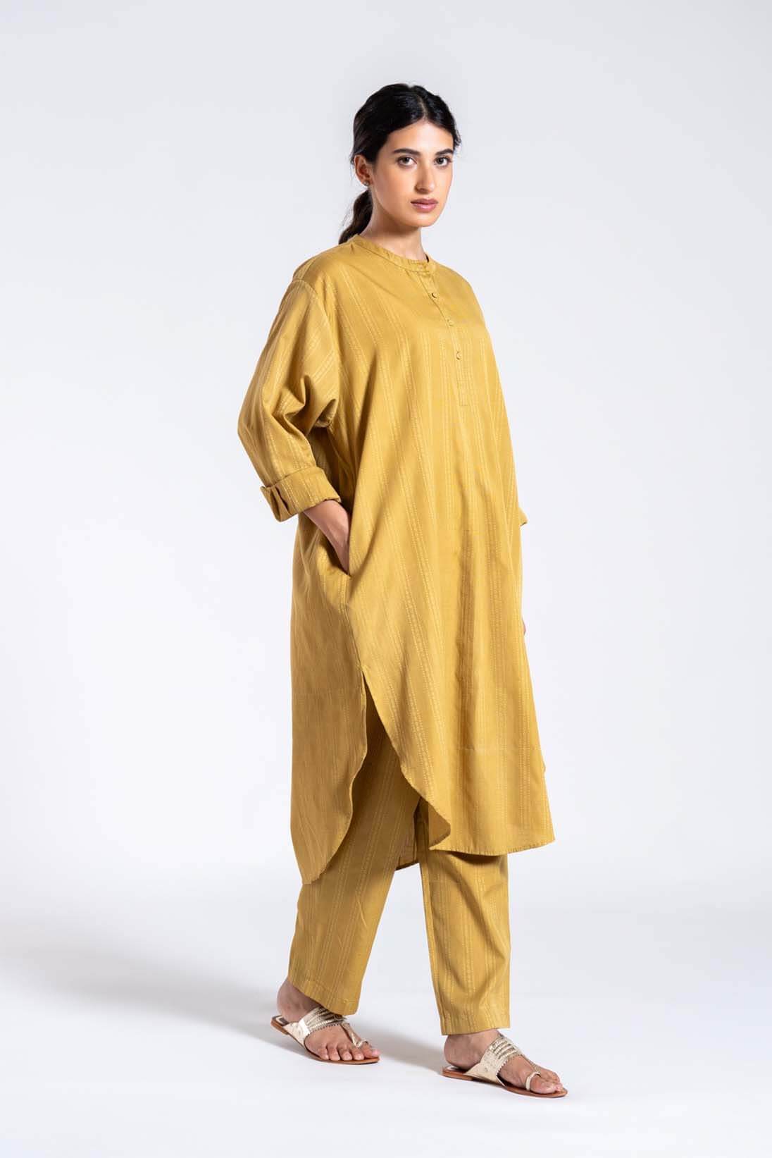 Our favourite kameez set now available in hand woven organic cotton with self texture detials.