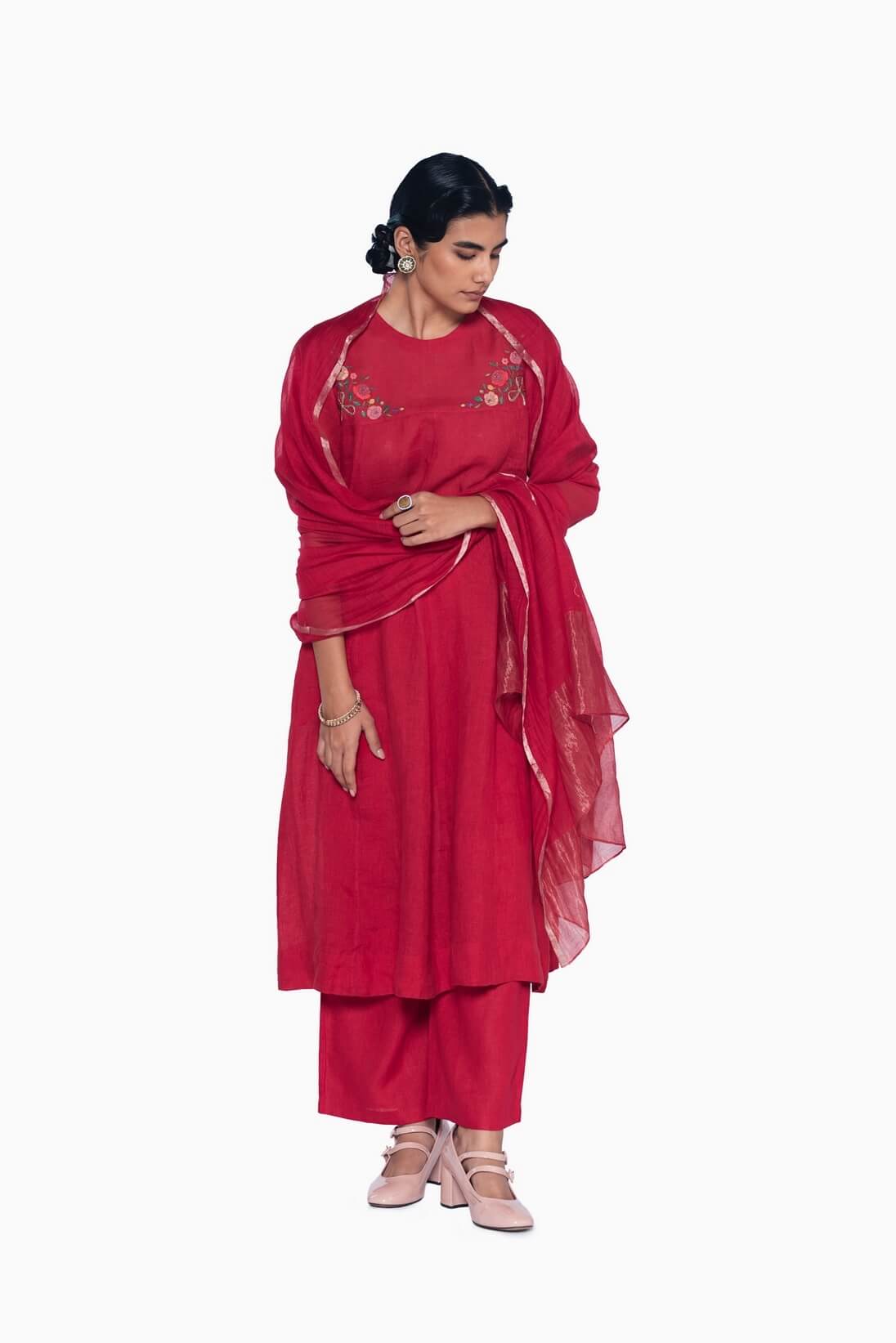 The Dupatta is 2.5 meter in length. The kurta set shown in the picture can be bought separately from this collection.
