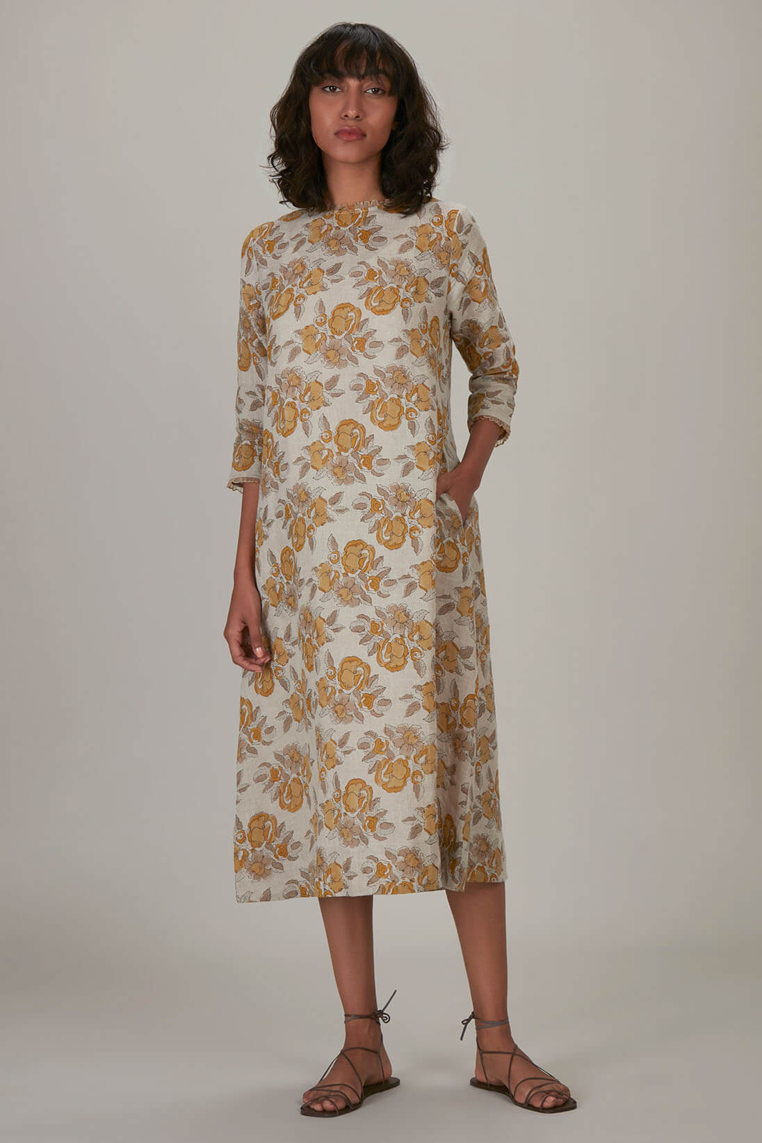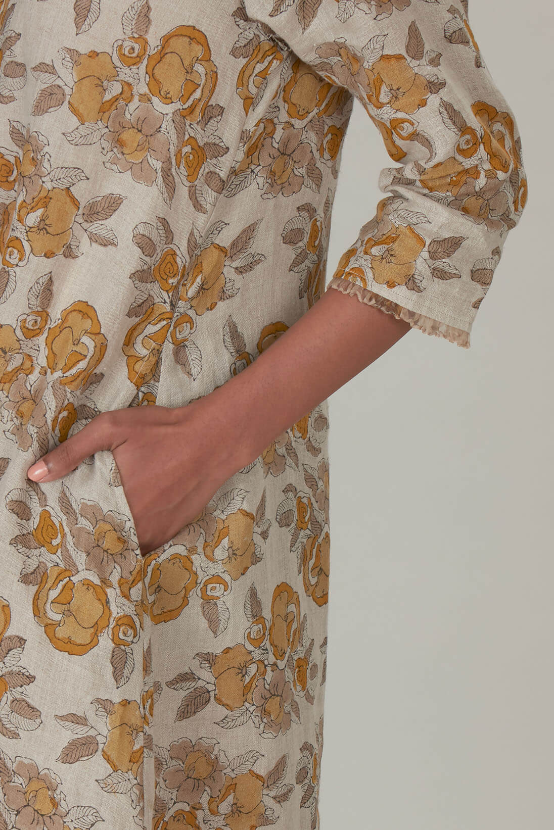 | Fabric | 100% Linen, Hand Block Printed, Organza Detail On Neck And Sleeves |