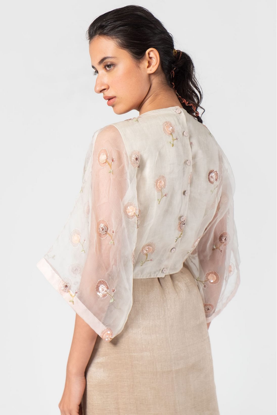 White Floral block printed kaftan blouse quantity