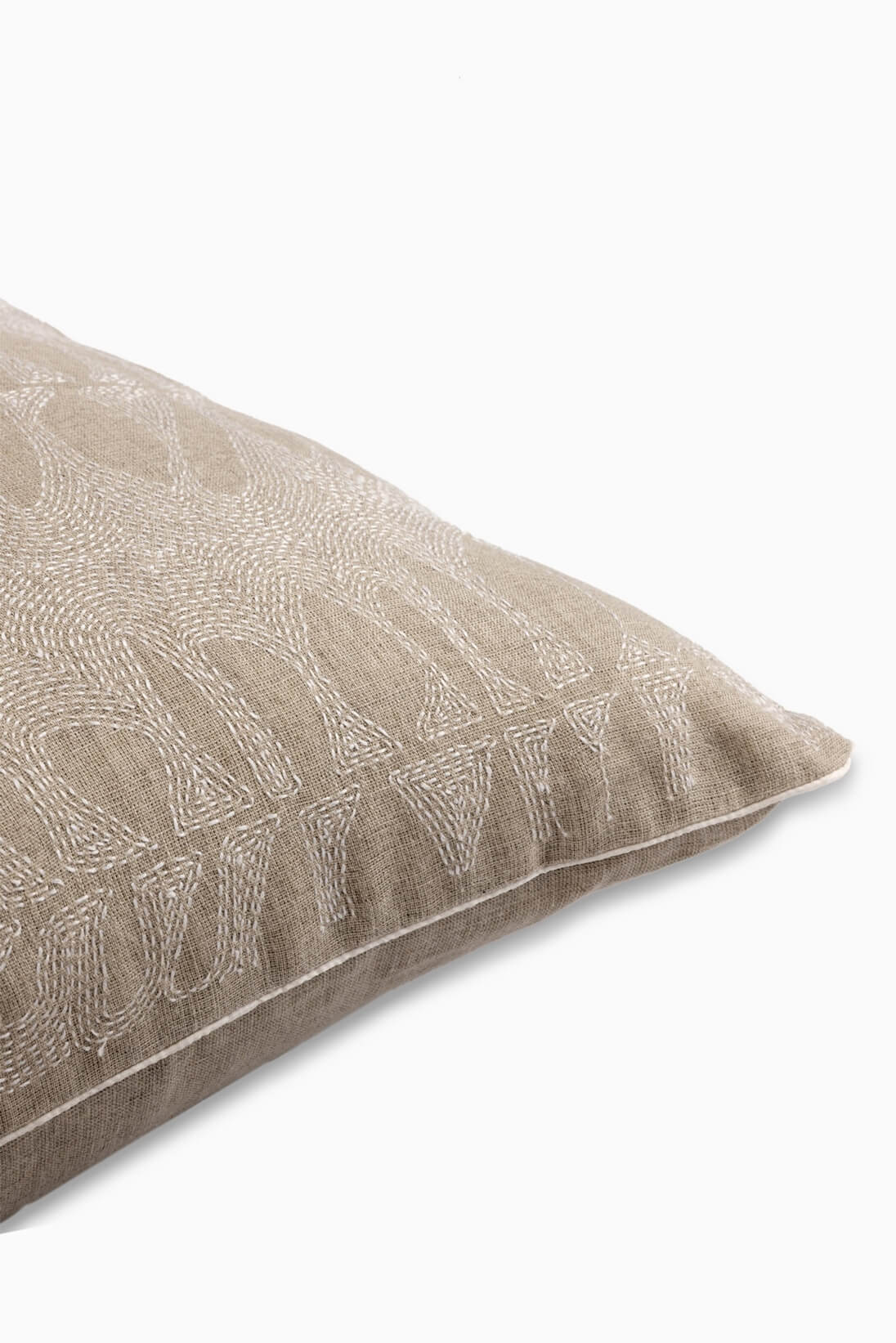 Natural Foliage Sujini Cushion Cover features hand-embroidered Sujini in an leaf oriented foliage pattern with raw ivory threads on a subtle natural beige base. A classic design that showcases fine craftsmanship, it adds a touch of elegance and refinement to any setting.