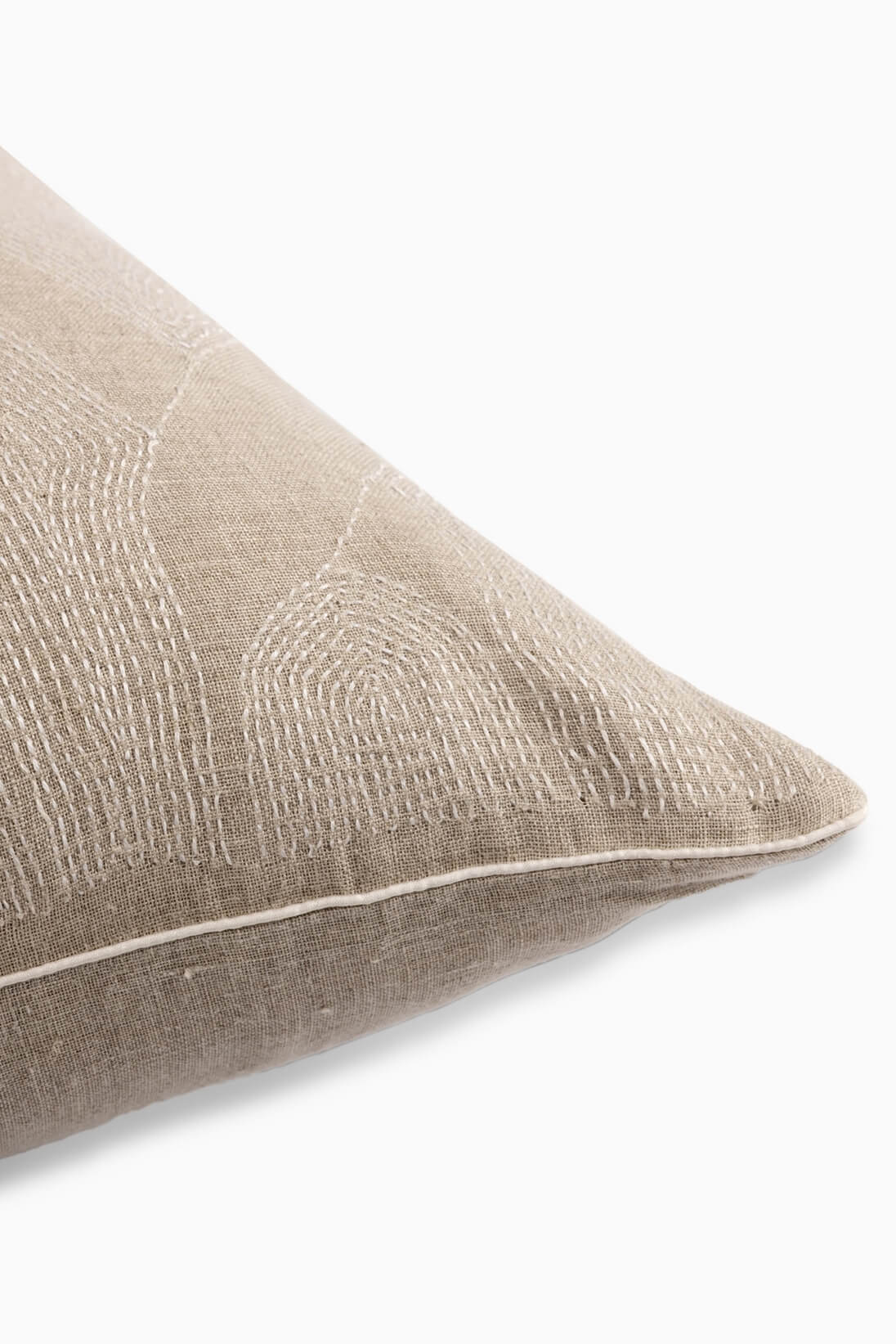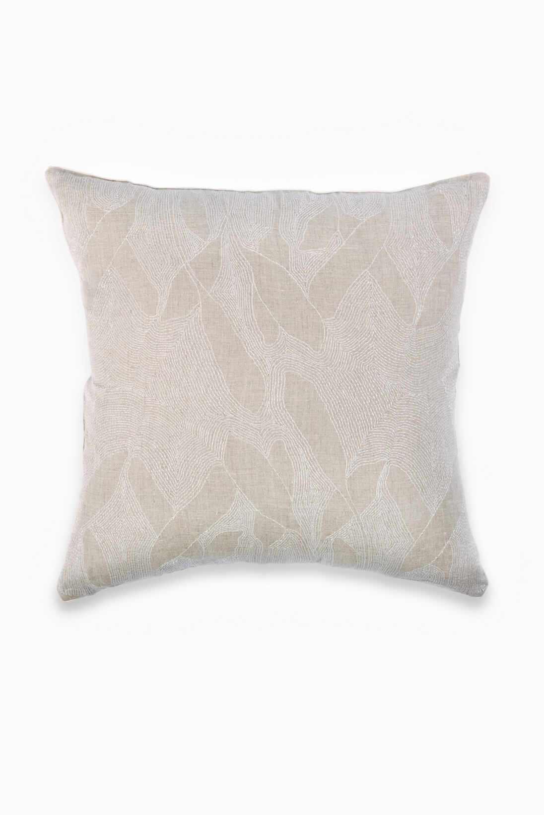 Seed Pod Sujini Cushion Cover features hand-embroidered Sujini in an abstract seed pod pattern with raw ivory threads on a subtle natural beige base. A classic design that showcases fine craftsmanship, it adds a touch of elegance and refinement to any setting.
