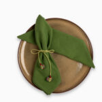 Green Hopper Napkins, crafted from handspun, handwoven cotton in a bright green, feature a contrasting hemline for added detail. These napkins will bring a burst of color and warmth to your table, creating a welcoming and lively atmosphere.