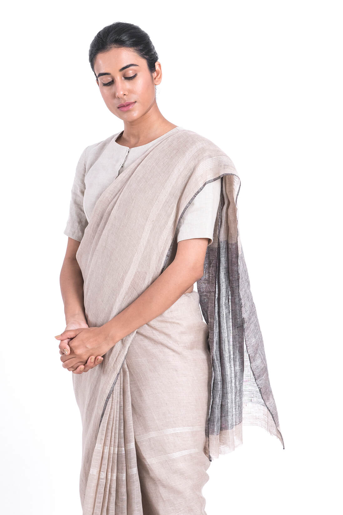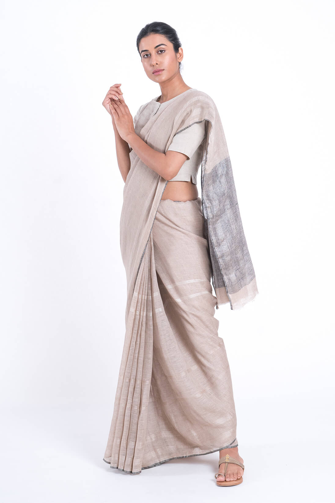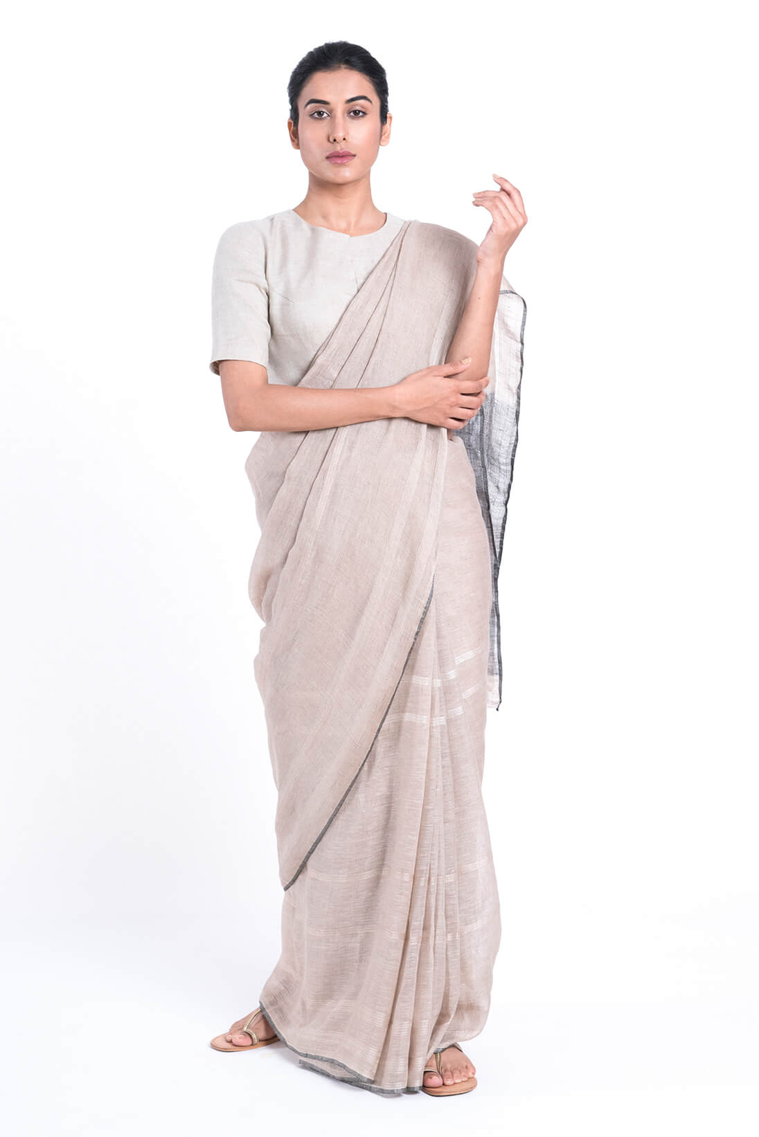 Abstarct Leno Striped Linen Sari