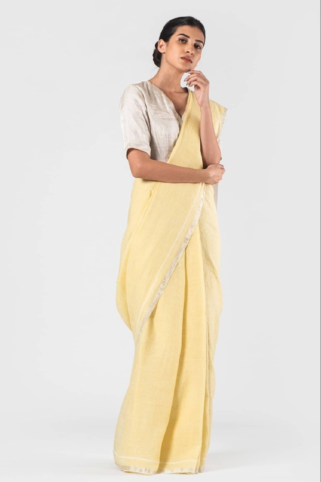 Canary Yellow Linen Soft Checkered Sari