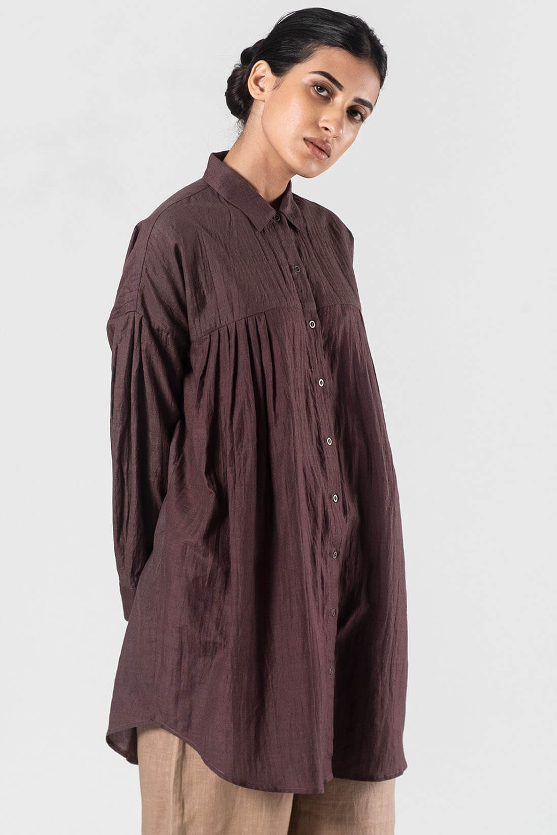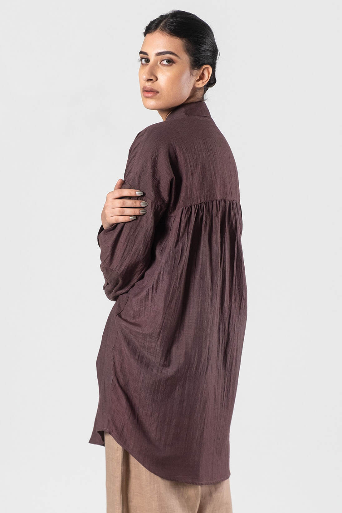 Dusty brown Nasya wool silk shirt