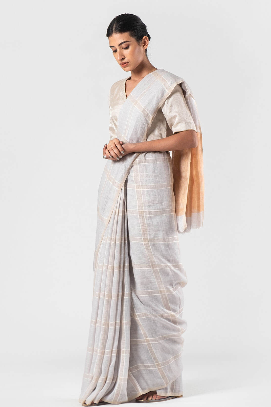 Ice blue Silk checkered sari