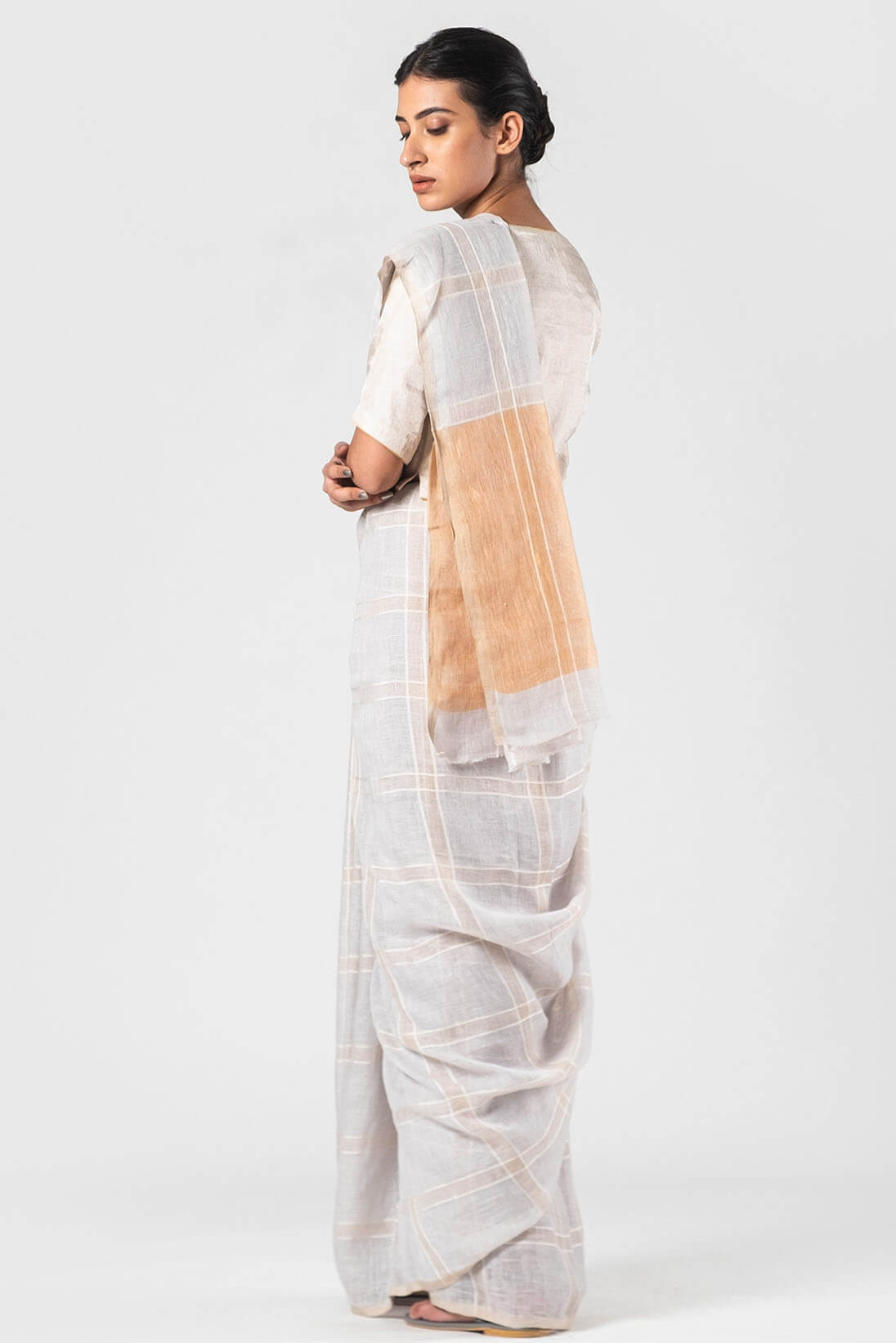 Ice blue Silk checkered sari quantity