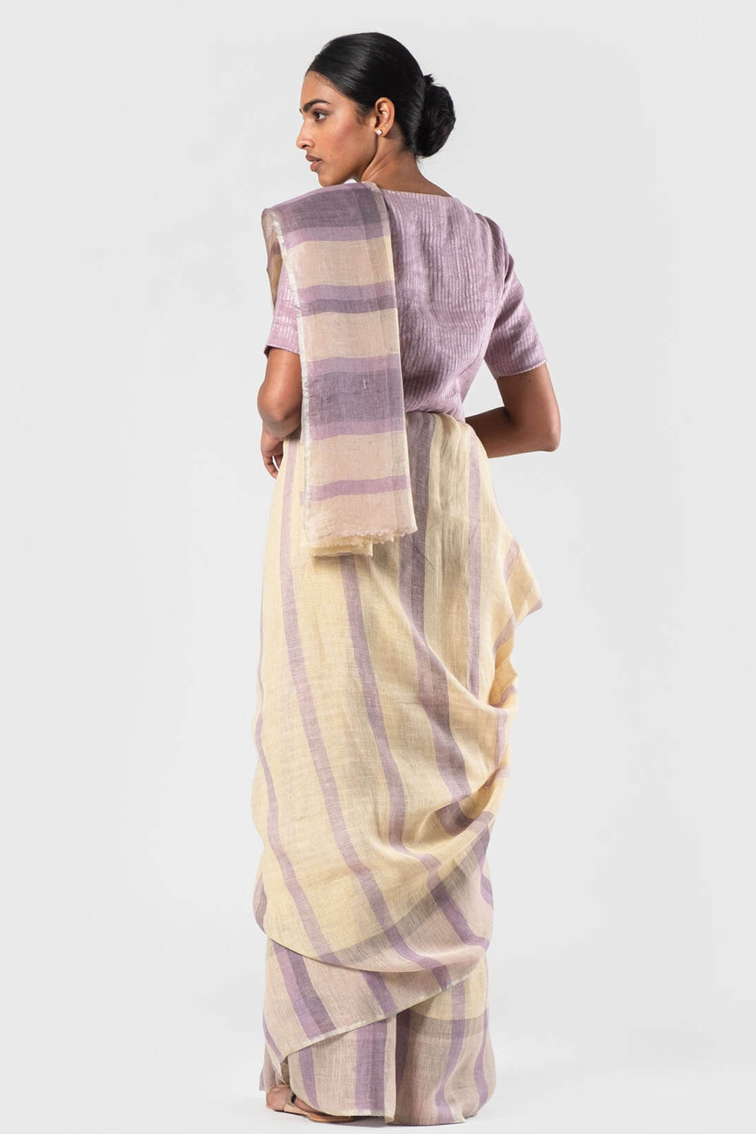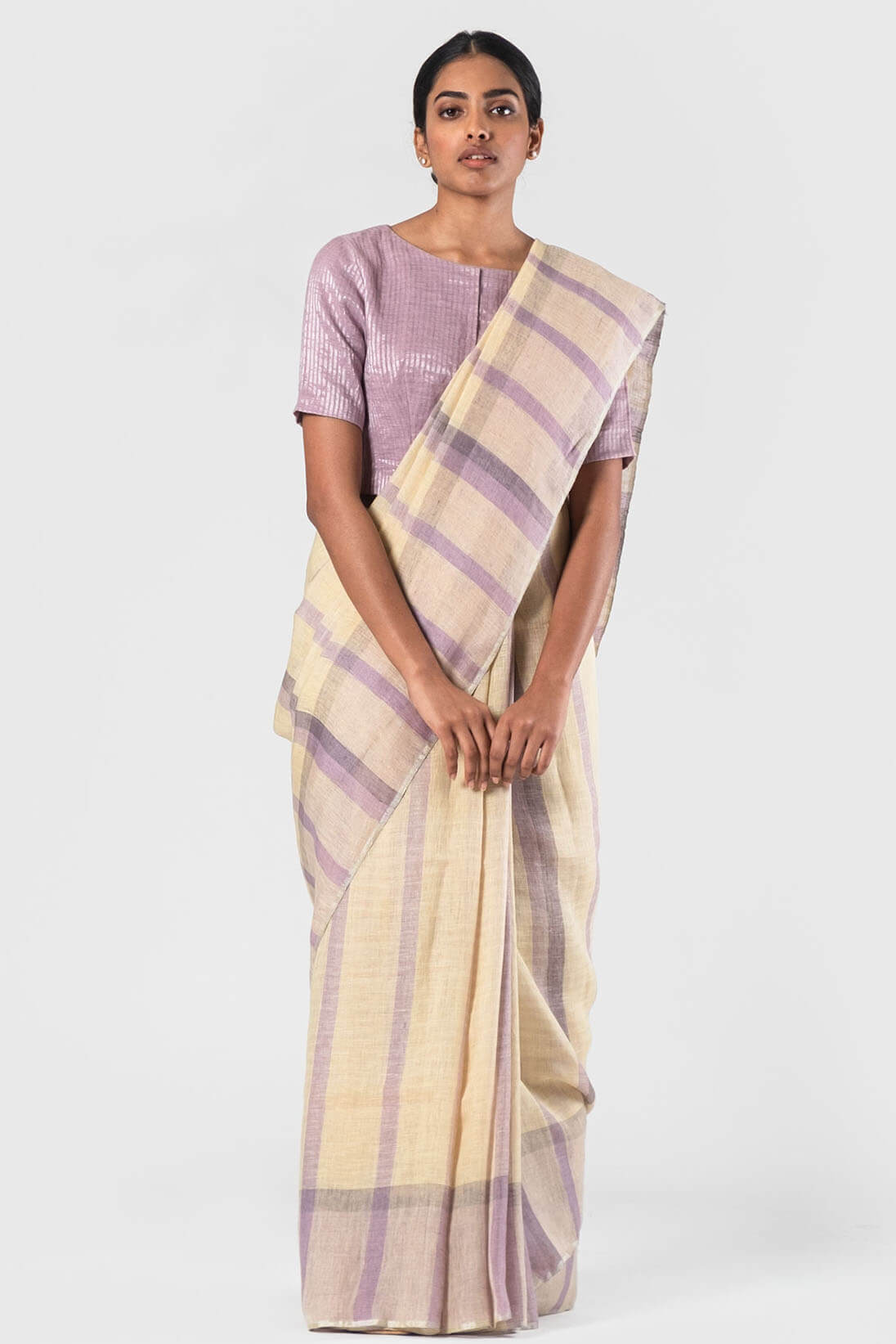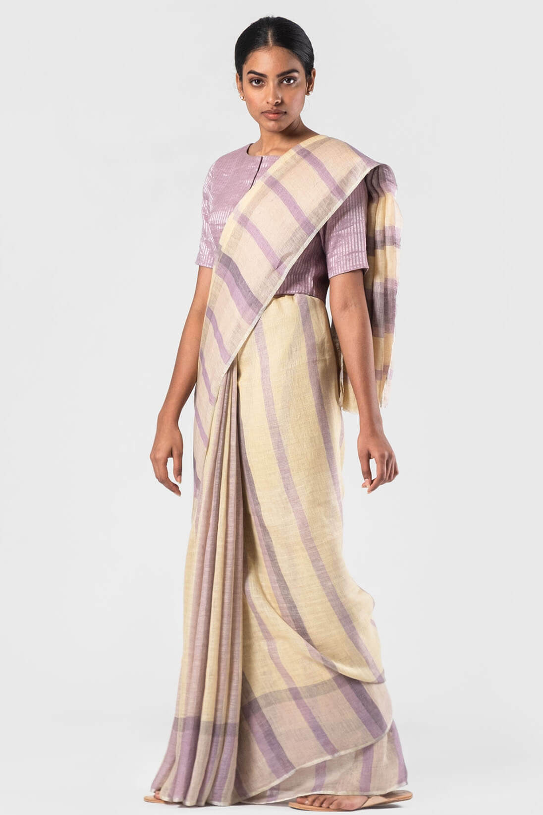 Lavender-Vanilla Natural plaid summer linen sari