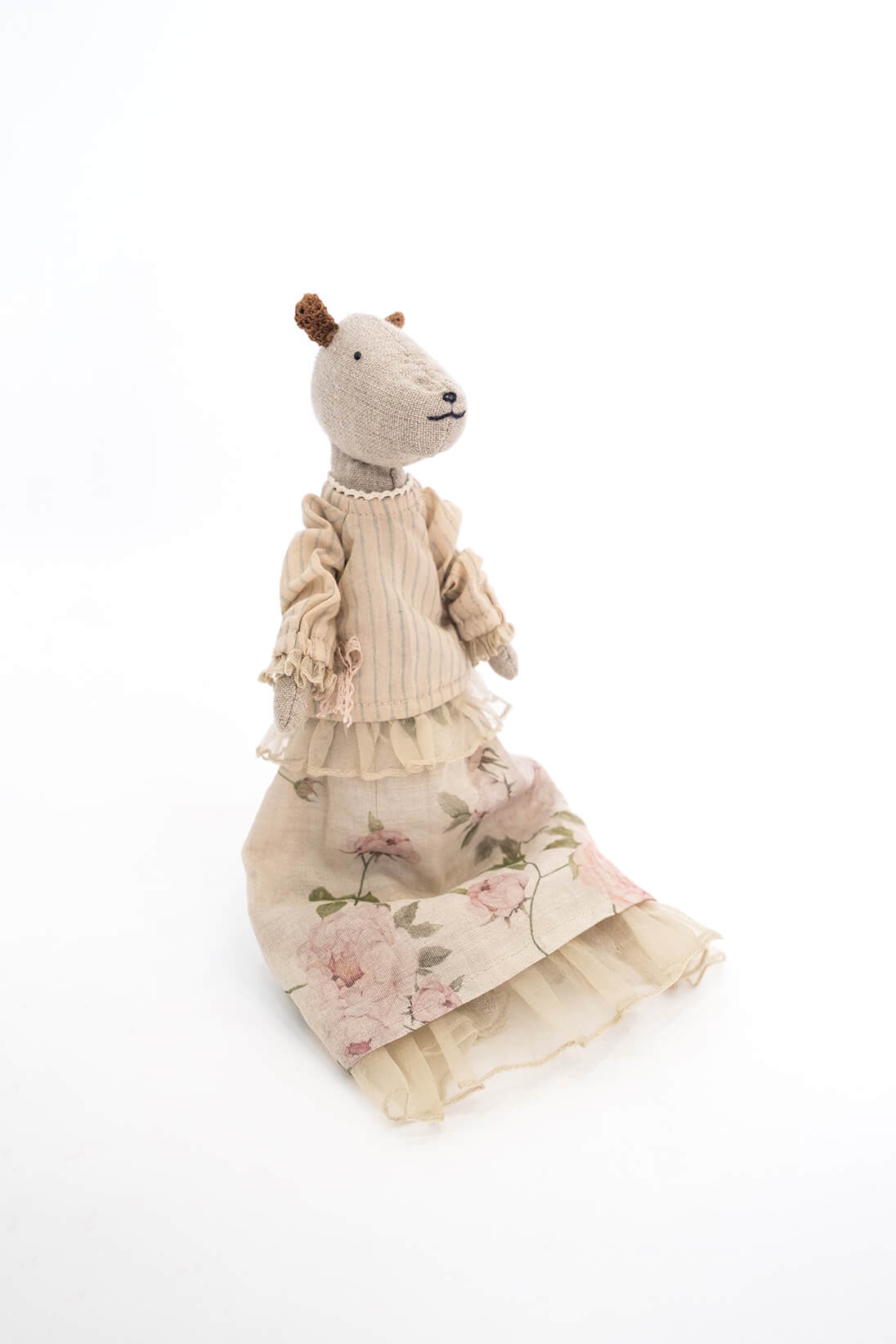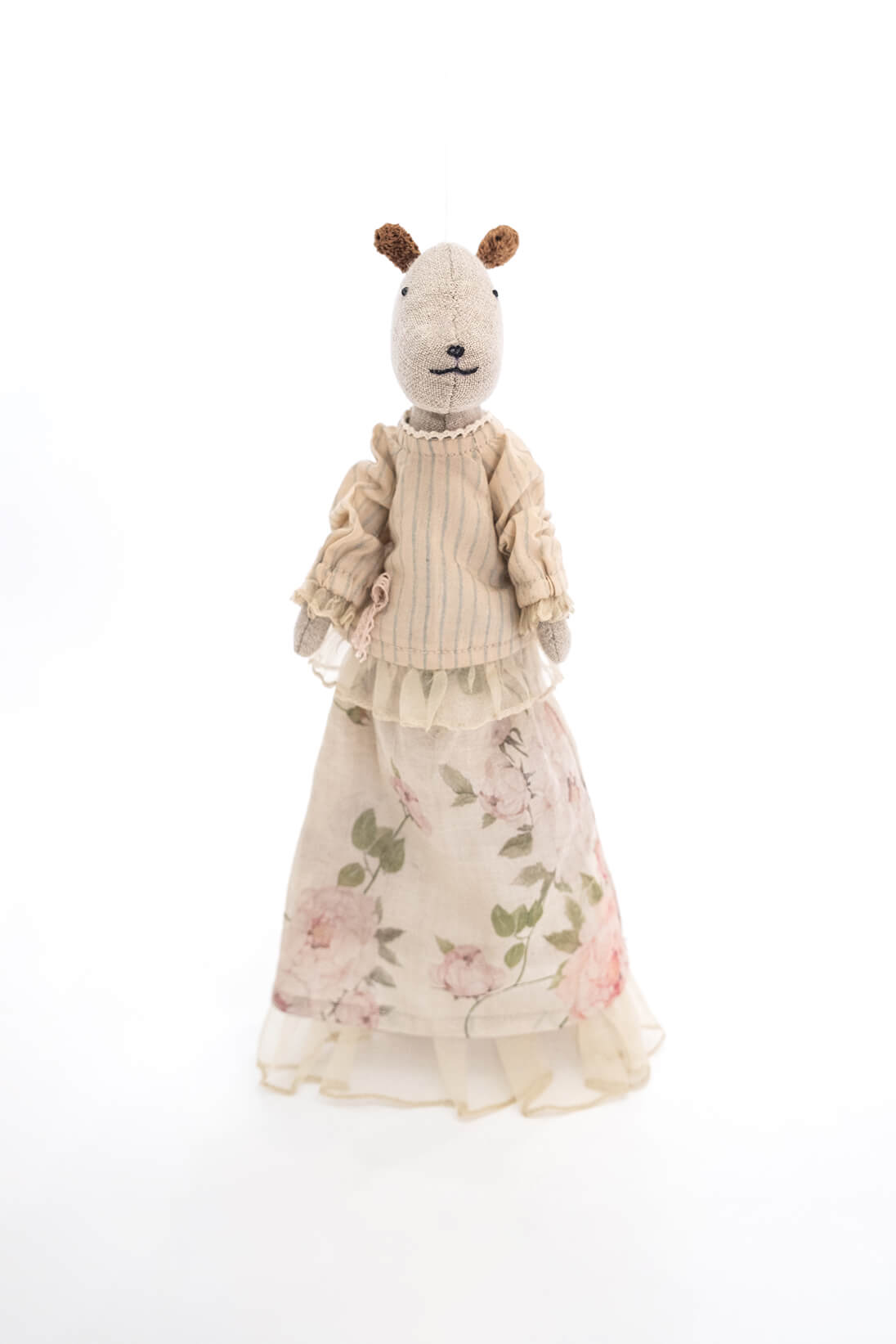 Louise, the meerkat in block printed full sleeve shirt detailed with organza gathering on the hem and sleeves.Paired with printed zari skirt with organza gathering on the hem